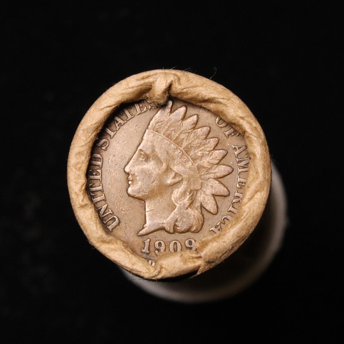 ***Auction Highlight*** Indian 1c Shotgun Roll, 1909 end, KEY date 's' mint other, Wow! . . (fc)