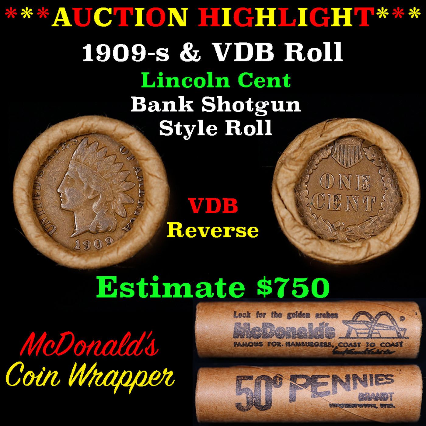 ***Auction Highlight*** Indian cent 1c orig McDonald's Brandt wrapper roll, 1909 end S other end. Indian cent 1c original Shotgun Roll, 1909 on one end, S reverse on the other. Actual roll pictured is the roll you will get. A great original bank shotgun roll with very tight ends. From the feedback we have been receiving, people are happy with these roll. These shotgun rolls are all from a new consignee. They are all frrom one Estate. This particular Roll shows a 1909 on one end and a S reverse on the other end.