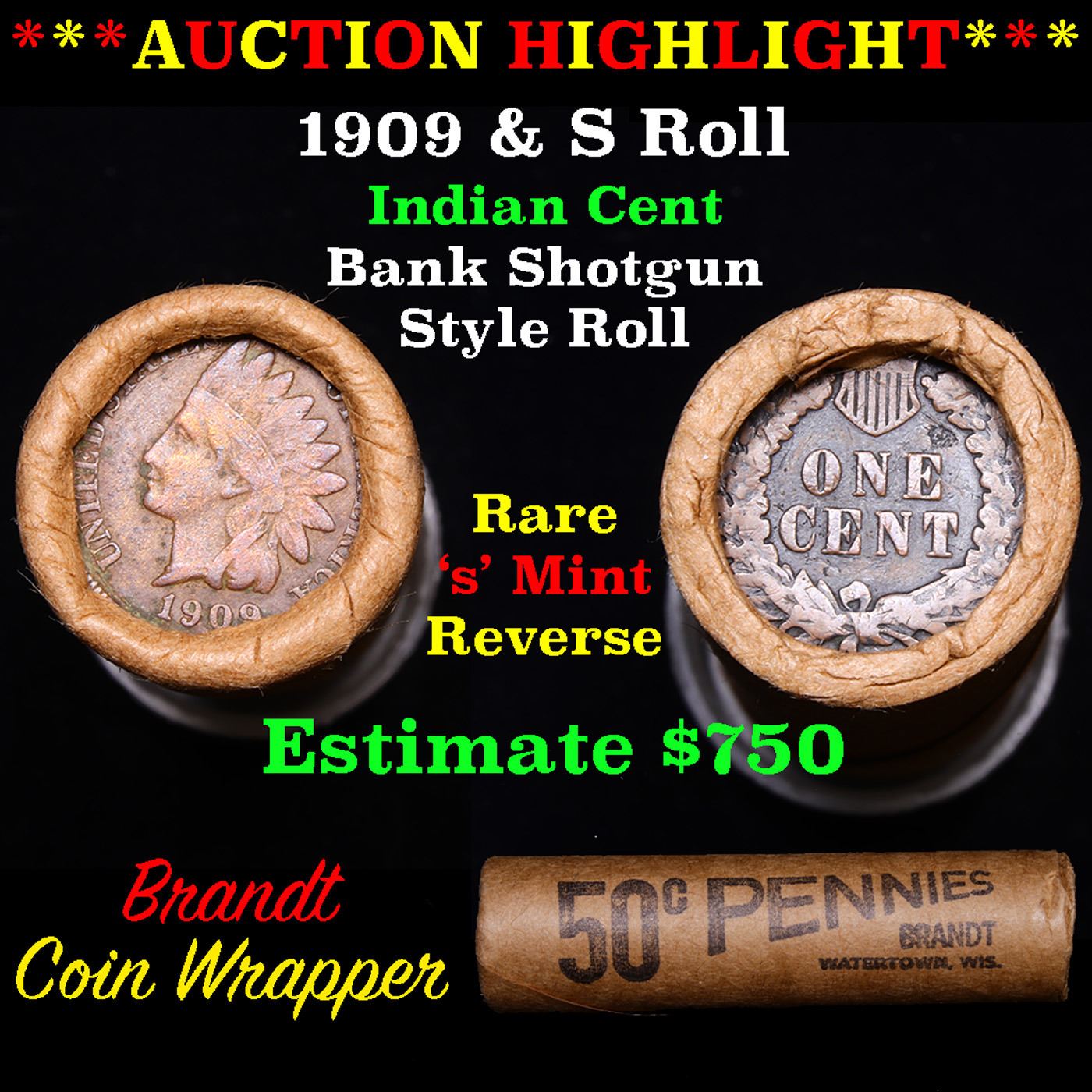 ***Auction Highlight*** Indian cent 1c orig roll, 1909 end S other end
