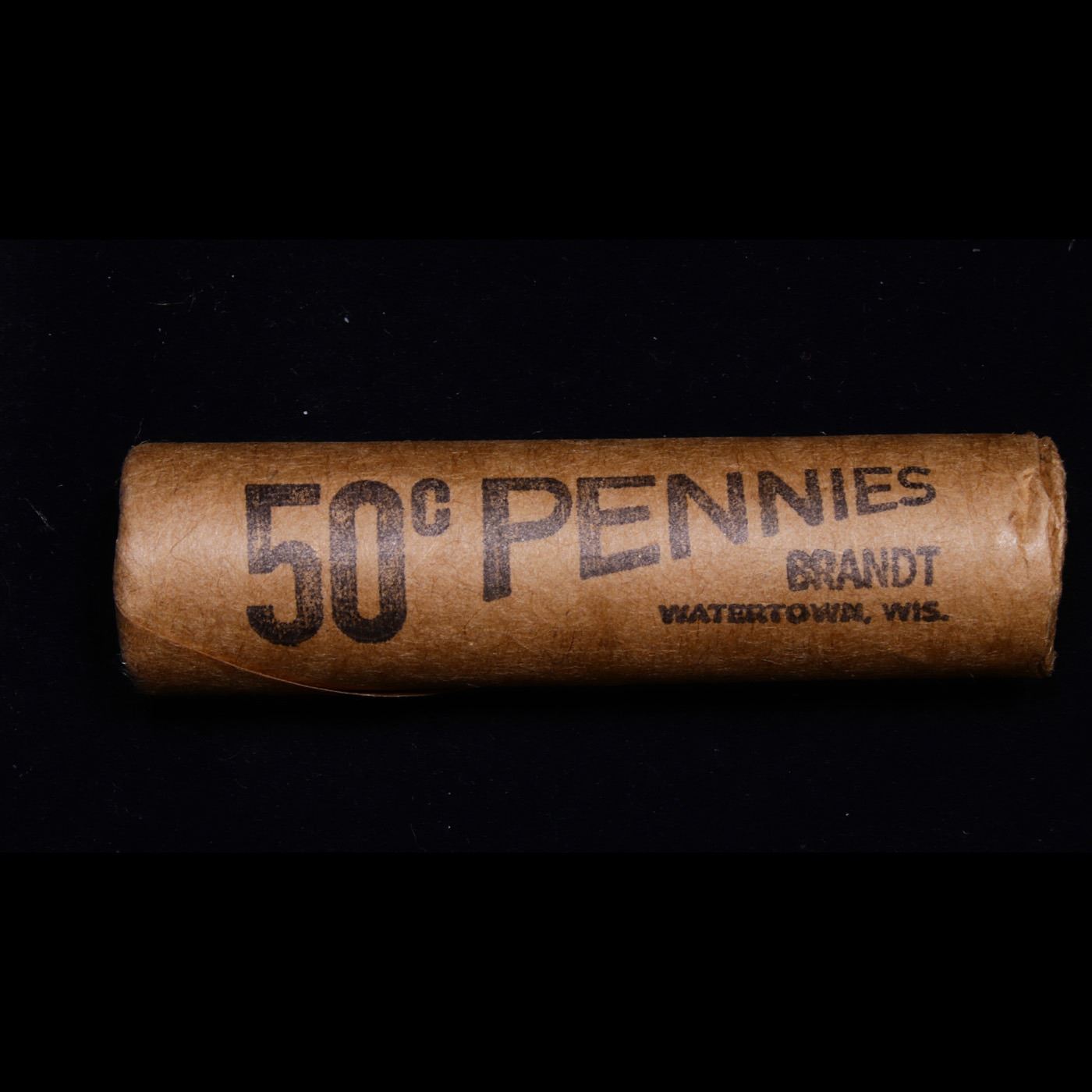 ***Auction Highlight*** Indian cent 1c orig roll, 1909 end S other end. The roll is held in a Rare & Collectable McDonalds Brandt wrapper. A great bank style shotgun roll of Indian cents 1c with very tight ends. The rolls appear to be filled with a mixture of 1800's and 1900's. These shotgun rolls are all from a new consignee. They are all frrom one Estate. This particular Roll shows an 1909 on one end and a KEY date 's' mint on the reverse WOW!.