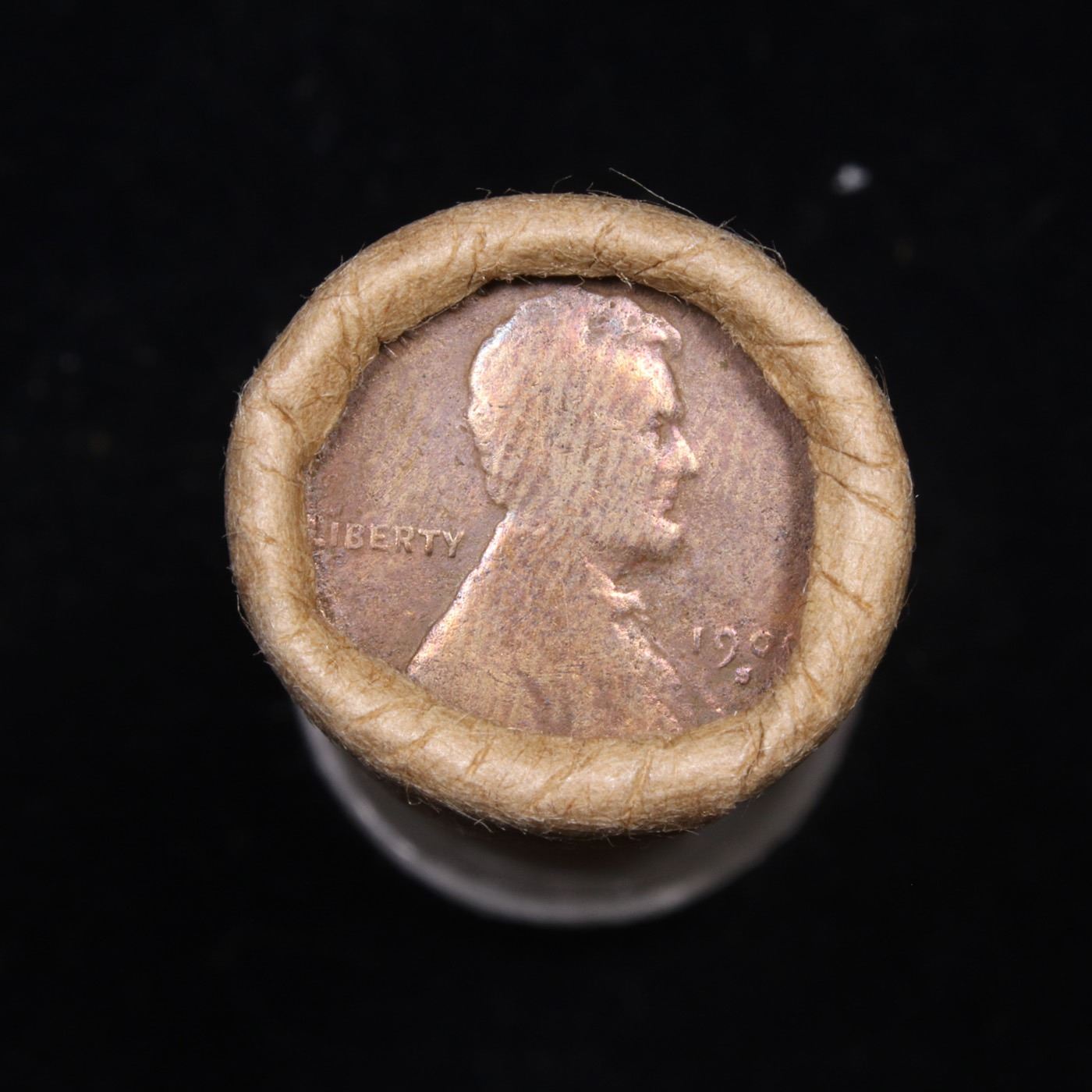 ***Auction Highlight*** Lincoln Wheat cent 1c orig roll, 1909-s end, VDB other end Grades (fc)