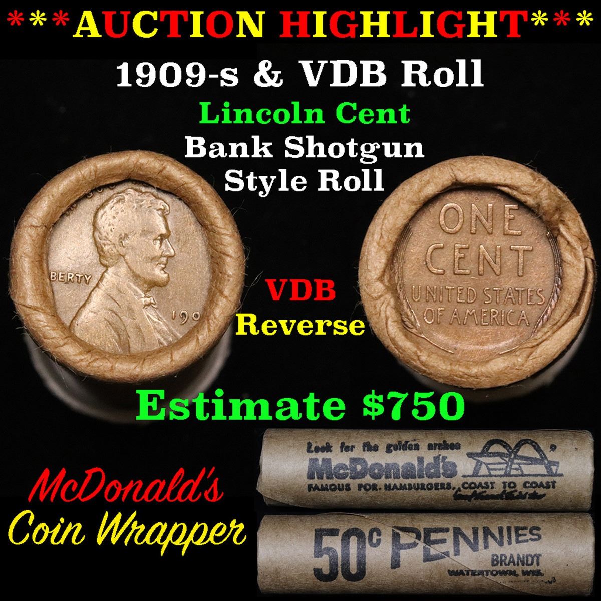 ***Auction Highlight*** Lincoln Wheat cent 1c orig roll, 1909-s one end, VDB rev other end, WOW! (fc