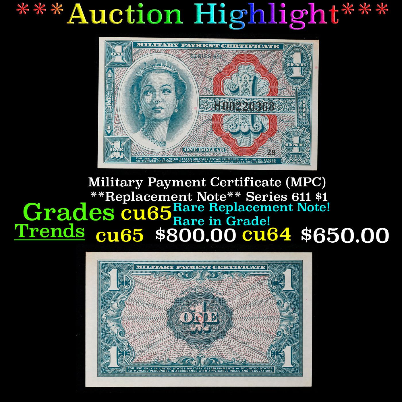 ***Auction Highlight*** Military Payment Certificate (MPC) **Replacement Note** Series 611 $1 Grades