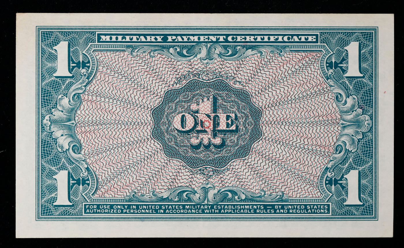 ***Auction Highlight*** Military Payment Certificate (MPC) **Replacement Note** Series 611 $1 Grades Gem CU. Military payment certificates, or MPC, were a form of currency used to pay U.S. military personnel in certain foreign countries. They were used in one area or another from a few months after the end of World War II until a few months after the end of U.S. participation in the Vietnam War – from 1946 until 1973. MPC utilized layers of line lithography to create colorful banknotes that could be produced cheaply. Fifteen series of MPCs were created. However, only 13 series were issued. The remaining two were largely destroyed, although some examples remain. Among the 13 released series a total of 94 notes are recognized.