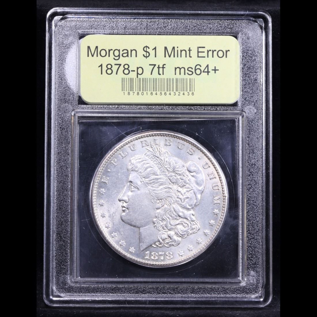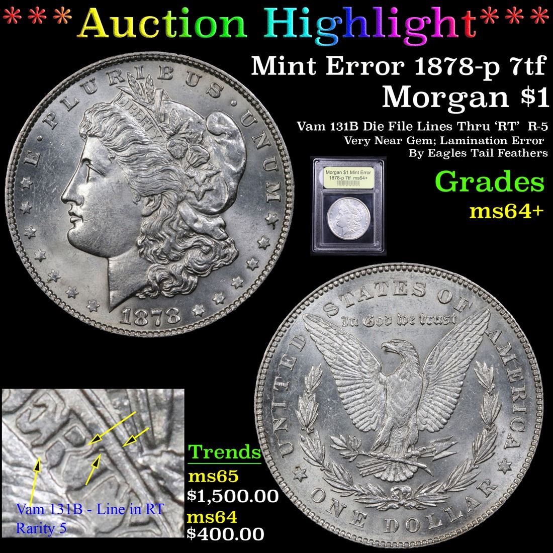 ***Auction Highlight*** Mint Error 1878-p 7tf Vam 131B Die File Lines Thru 'RT' R-5 Very Near Gem; Lamination Error By Eagles Tail Feathers Morgan Dollar $1 Graded Choice+ Unc By USCG. A Corey's Pick, Bid to Win, Don't let it get Away Coin