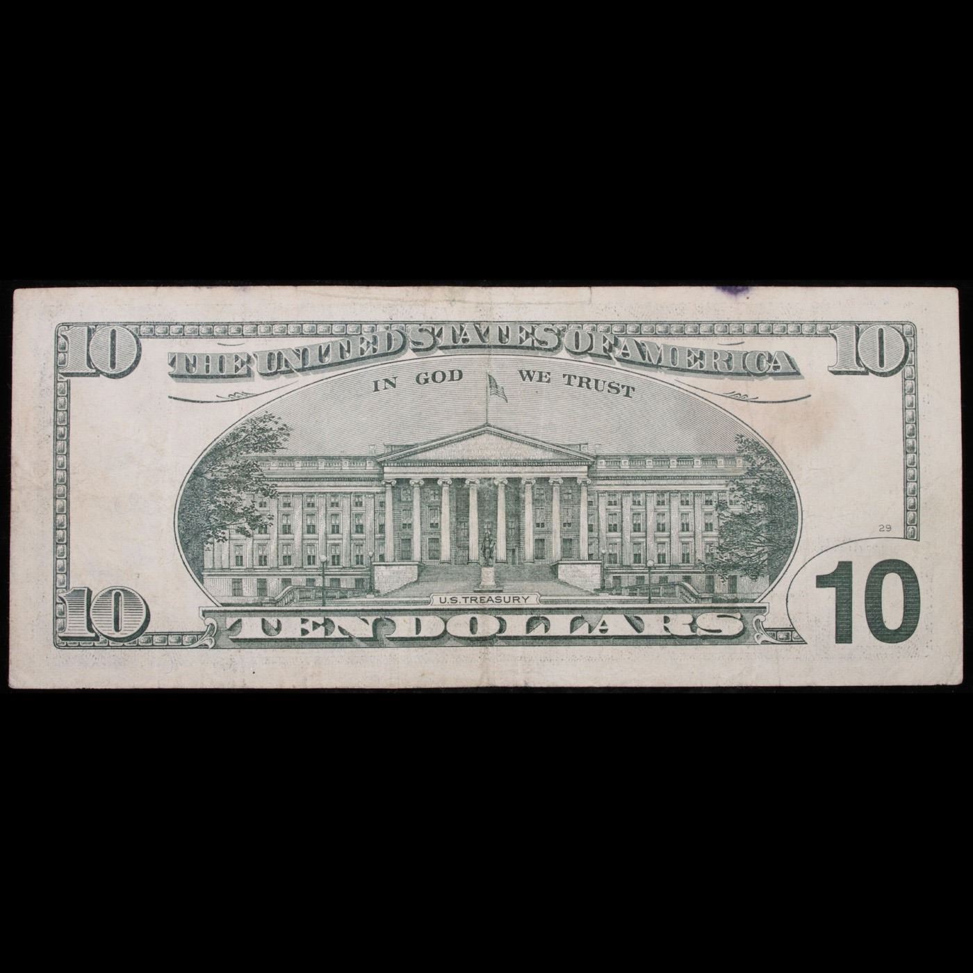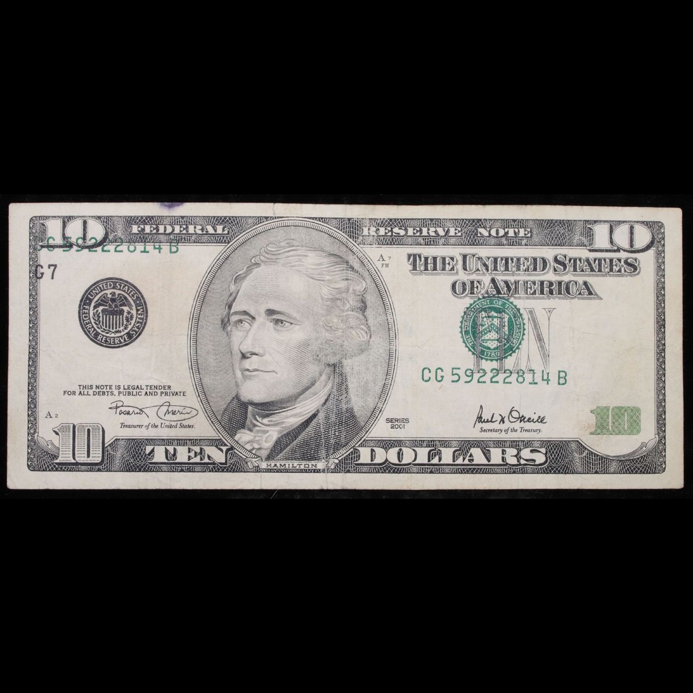 ***Auction Highlight*** Mint Error 2001 $10 Green Seal Federal Reserve Note Misaligned Print Grades xf. Mint Error 2001 $10 Green Seal Federal Reserve Note Misaligned Print