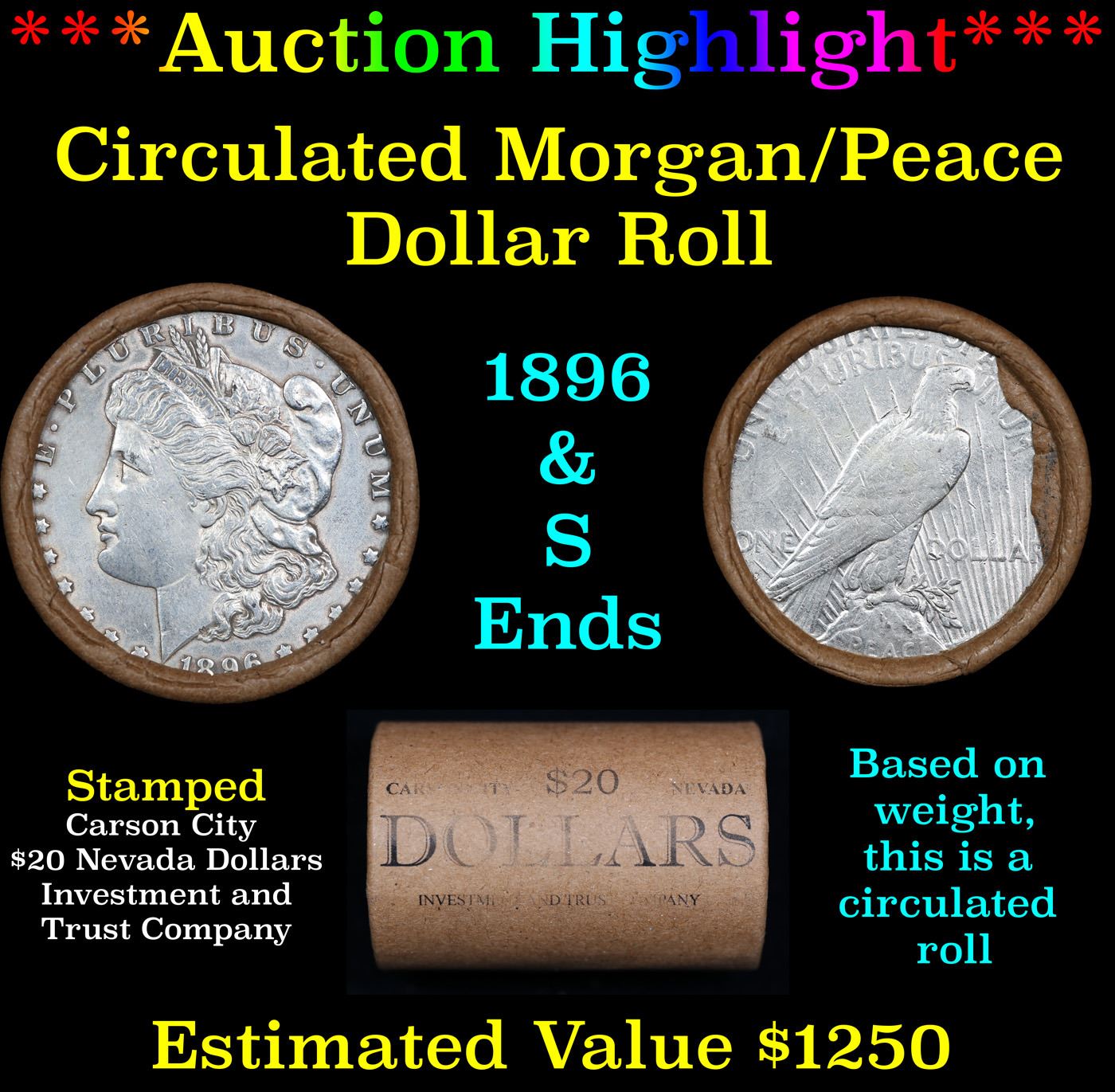 ***Auction Highlight*** Mixed Morgan/Peace Circ silver dollar roll, 20 coin 1896 & 'S' Ends (fc)