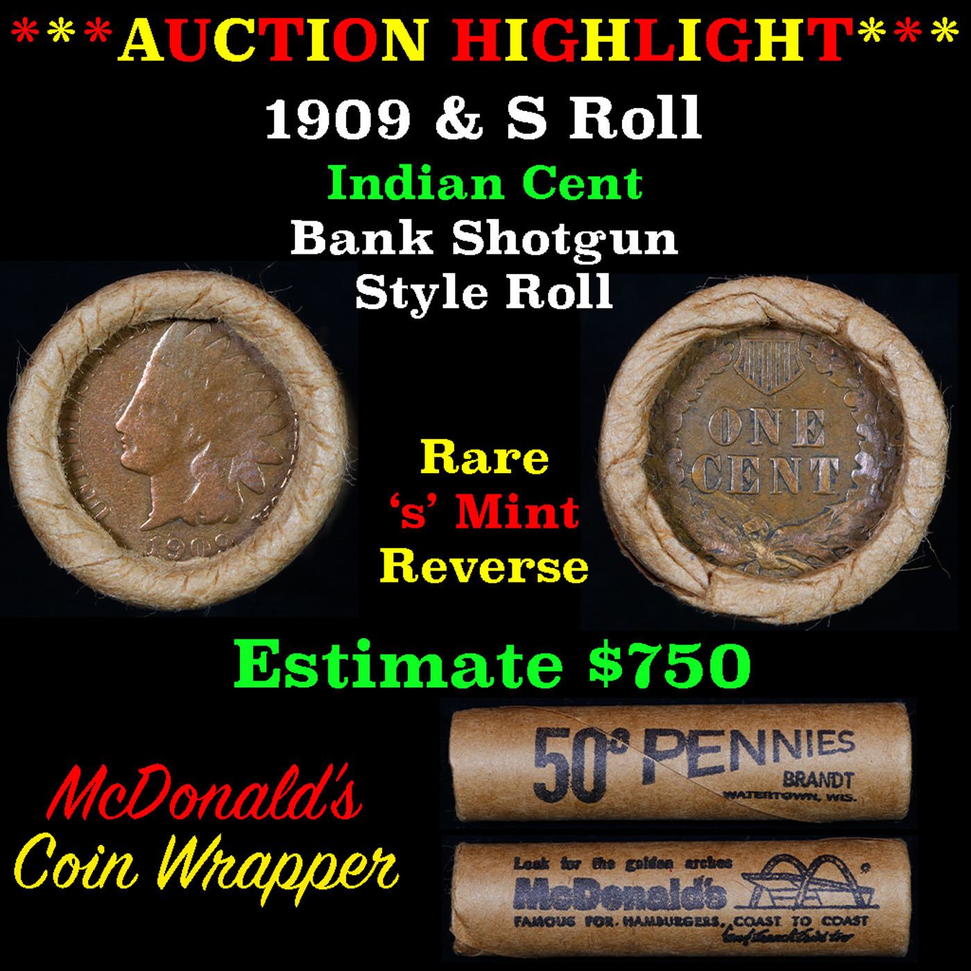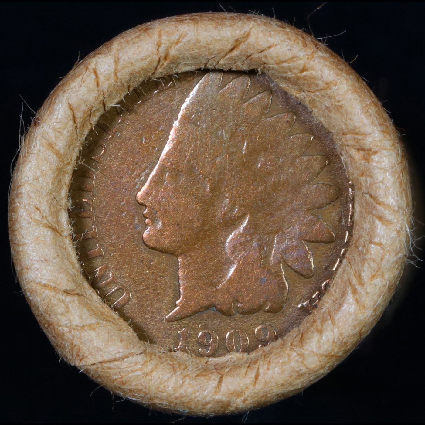 ***Auction Highlight*** Mixed small cents 1c orig shotgun roll, 1909 & S Indian Cent on other end, M