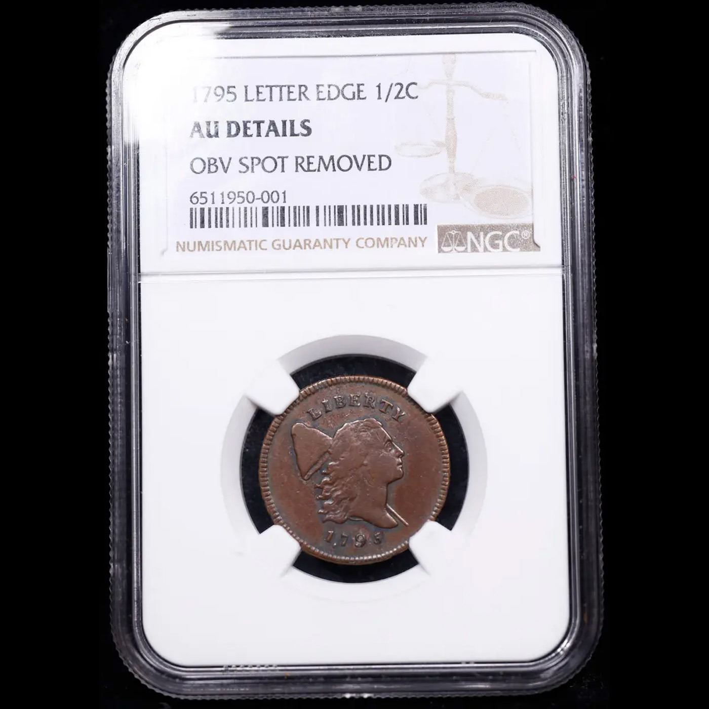 ***Auction Highlight*** NGC 1795 Letter Edge Liberty Cap half cent 1/2c Graded au details By NGC. A Key Date's Pick, Bid to Win, Don't let it get Away Coin