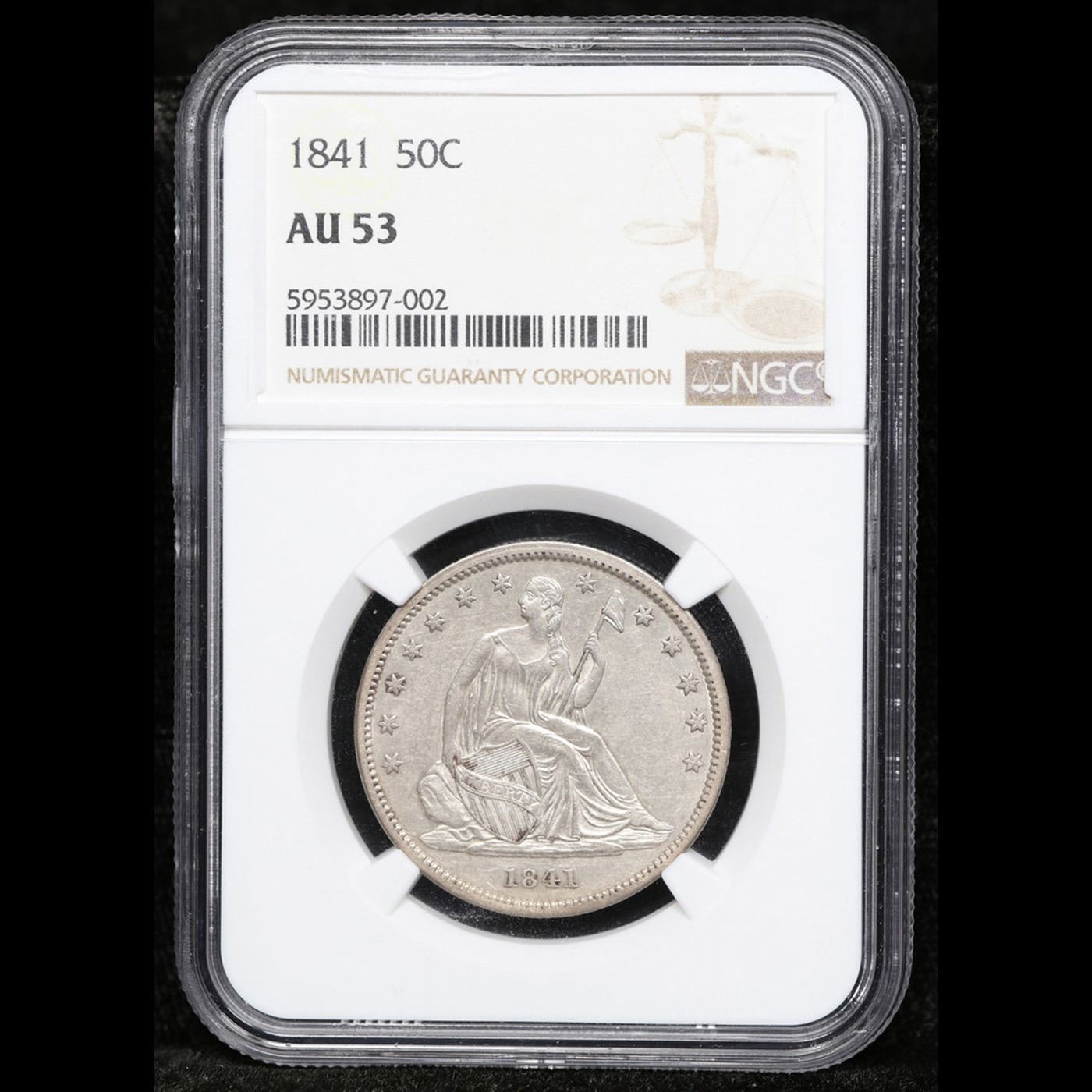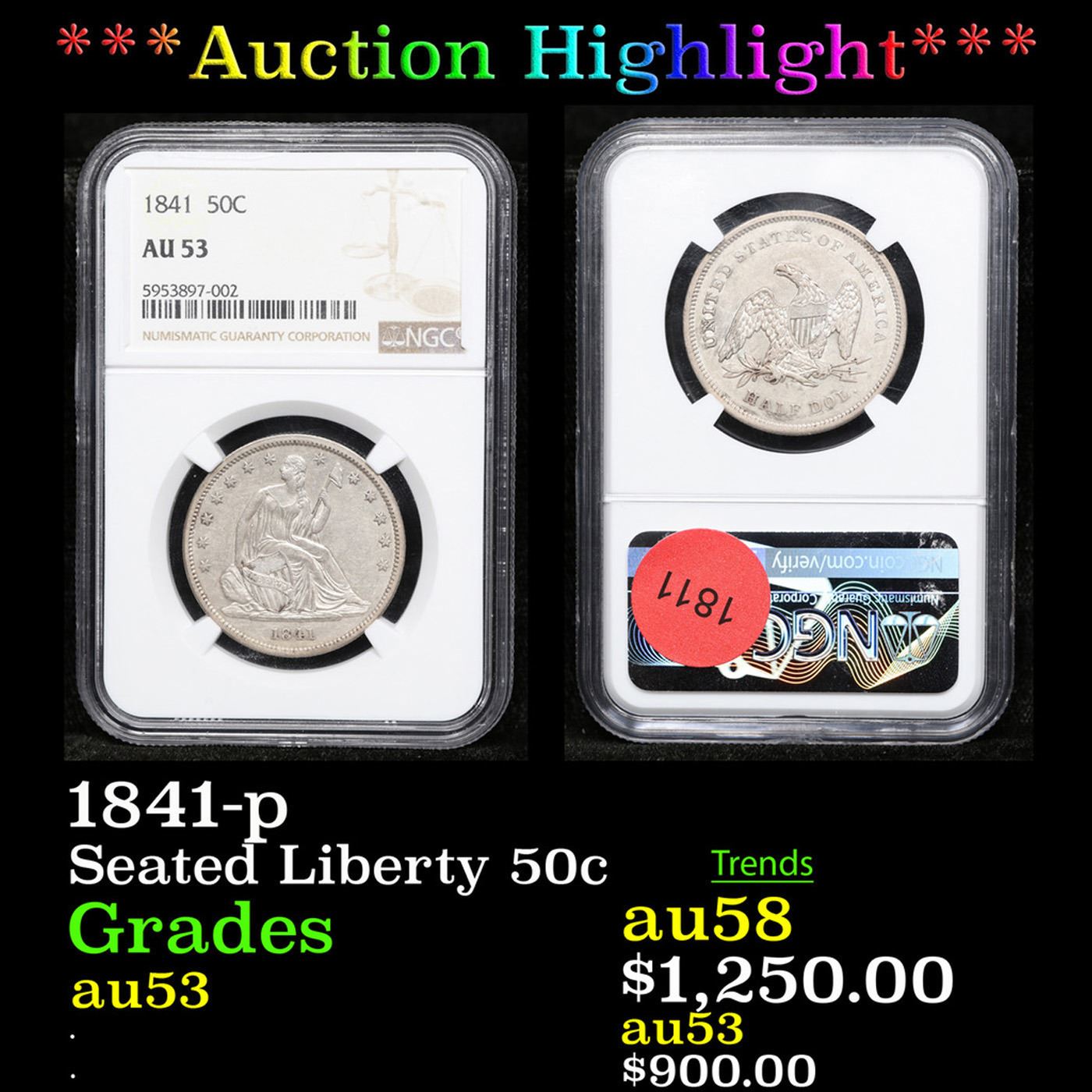 ***Auction Highlight*** NGC 1841-p Seated Half Dollar 50c Graded au53 By NGC.