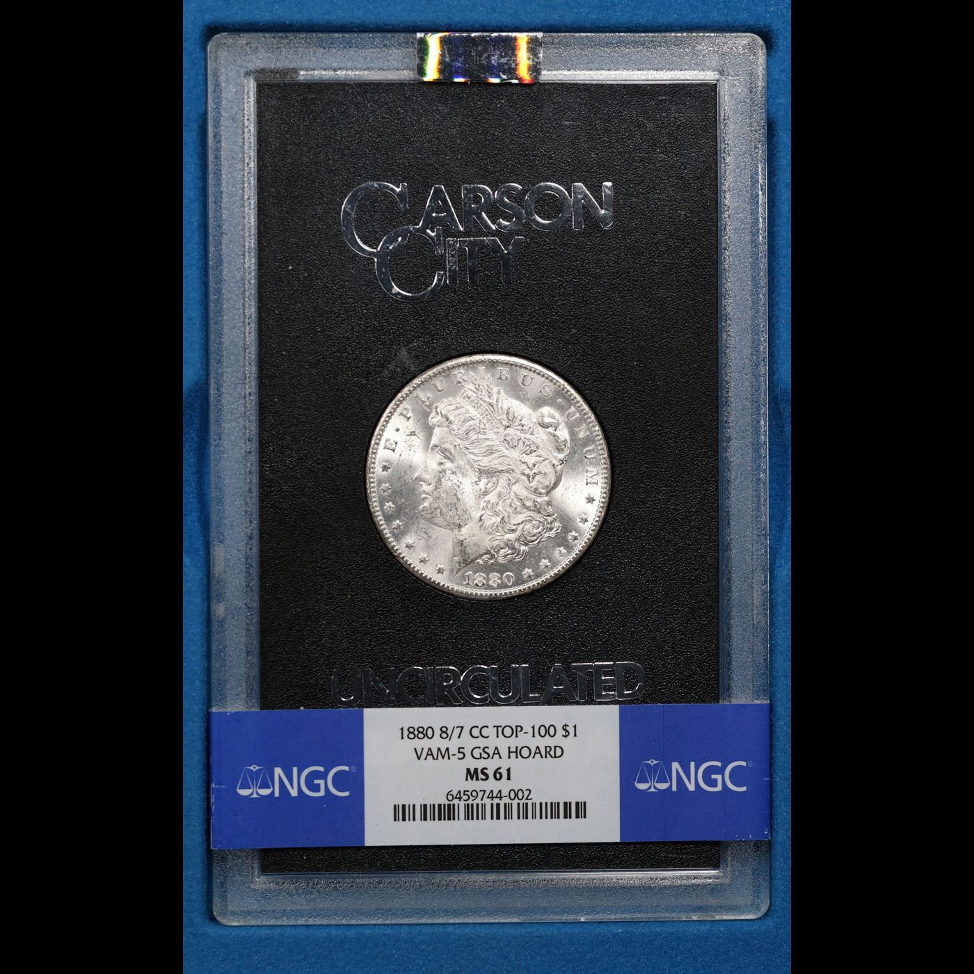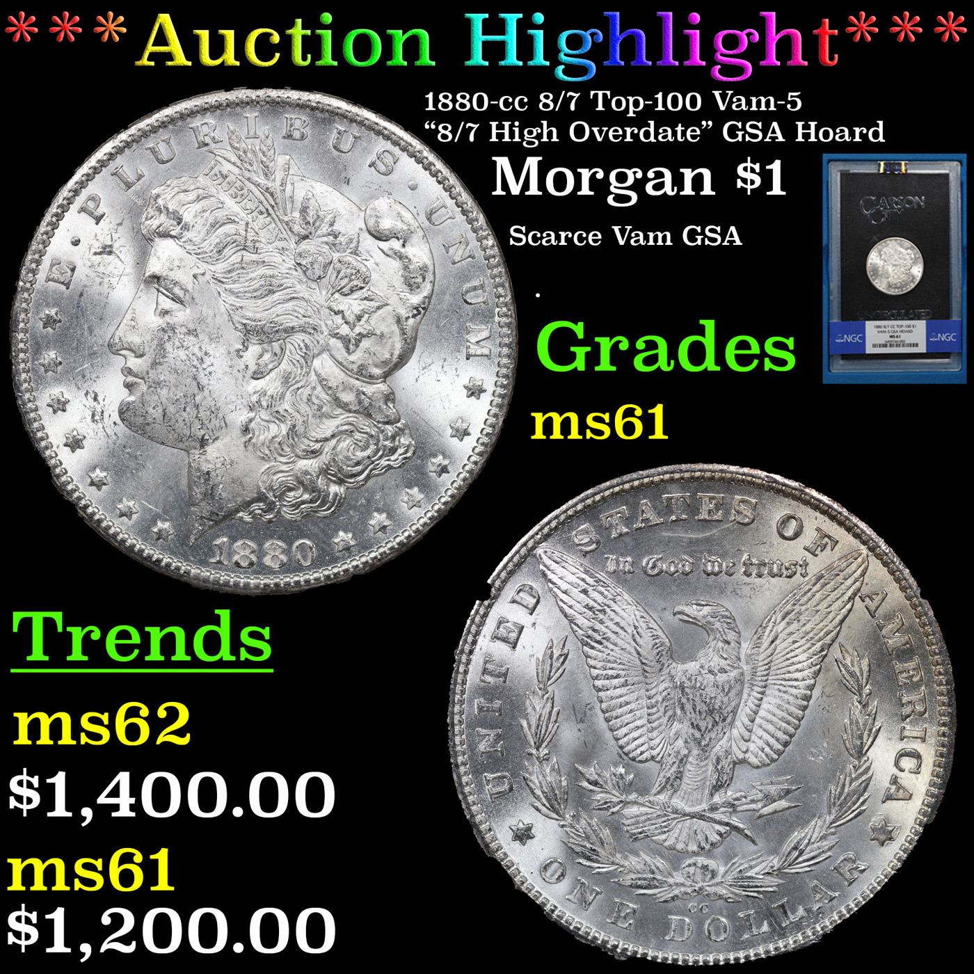 ***Auction Highlight*** NGC 1880-cc 8/7 Top-100 Morgan Dollar Vam-5 "8/7 High Overdate" GSA Hoard $1