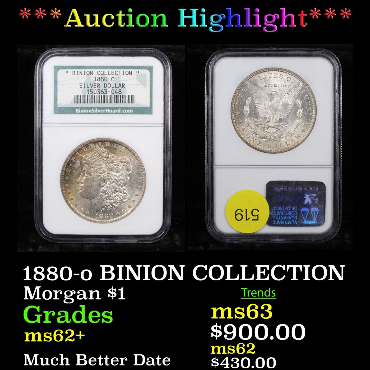 ***Auction Highlight*** NGC 1880-o BINION COLLECTION Morgan Dollar $1 Graded ms62+ By NGC.