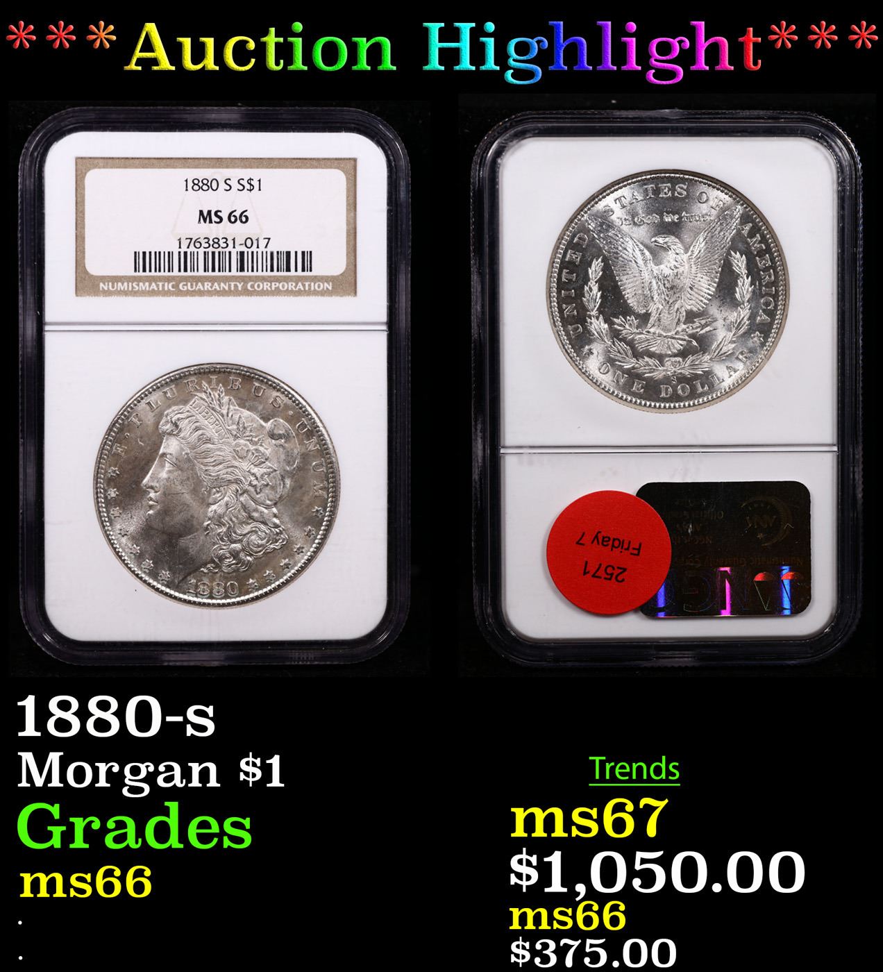 ***Auction Highlight*** NGC 1880-s Morgan Dollar $1 Graded ms66 By NGC.