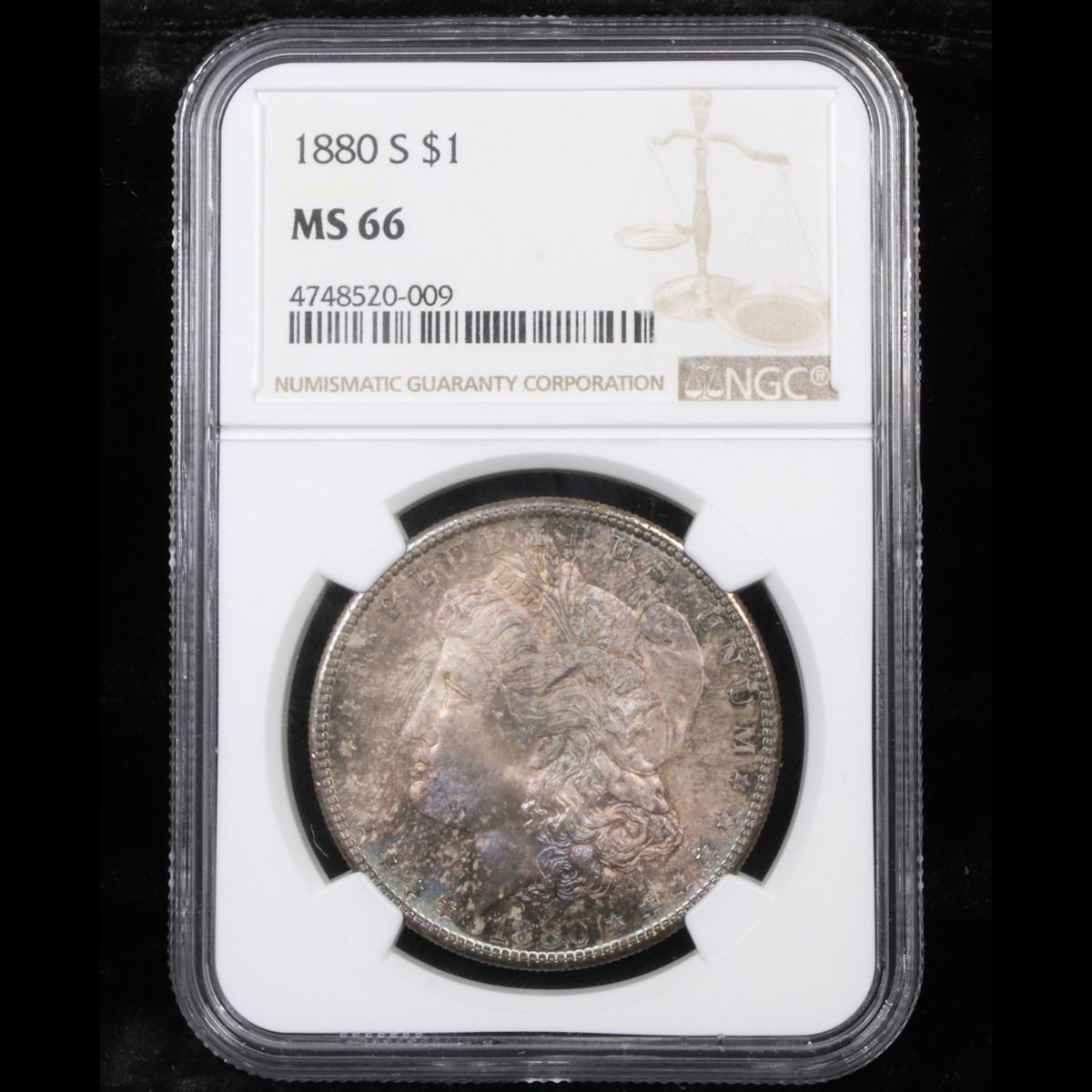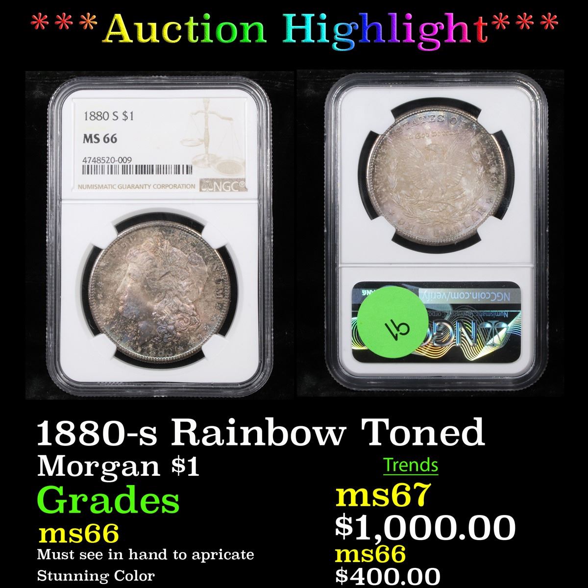 ***Auction Highlight*** NGC 1880-s Rainbow Toned Morgan Dollar $1 Graded ms66 By NGC. Stunning Color Must see in hand to apricate