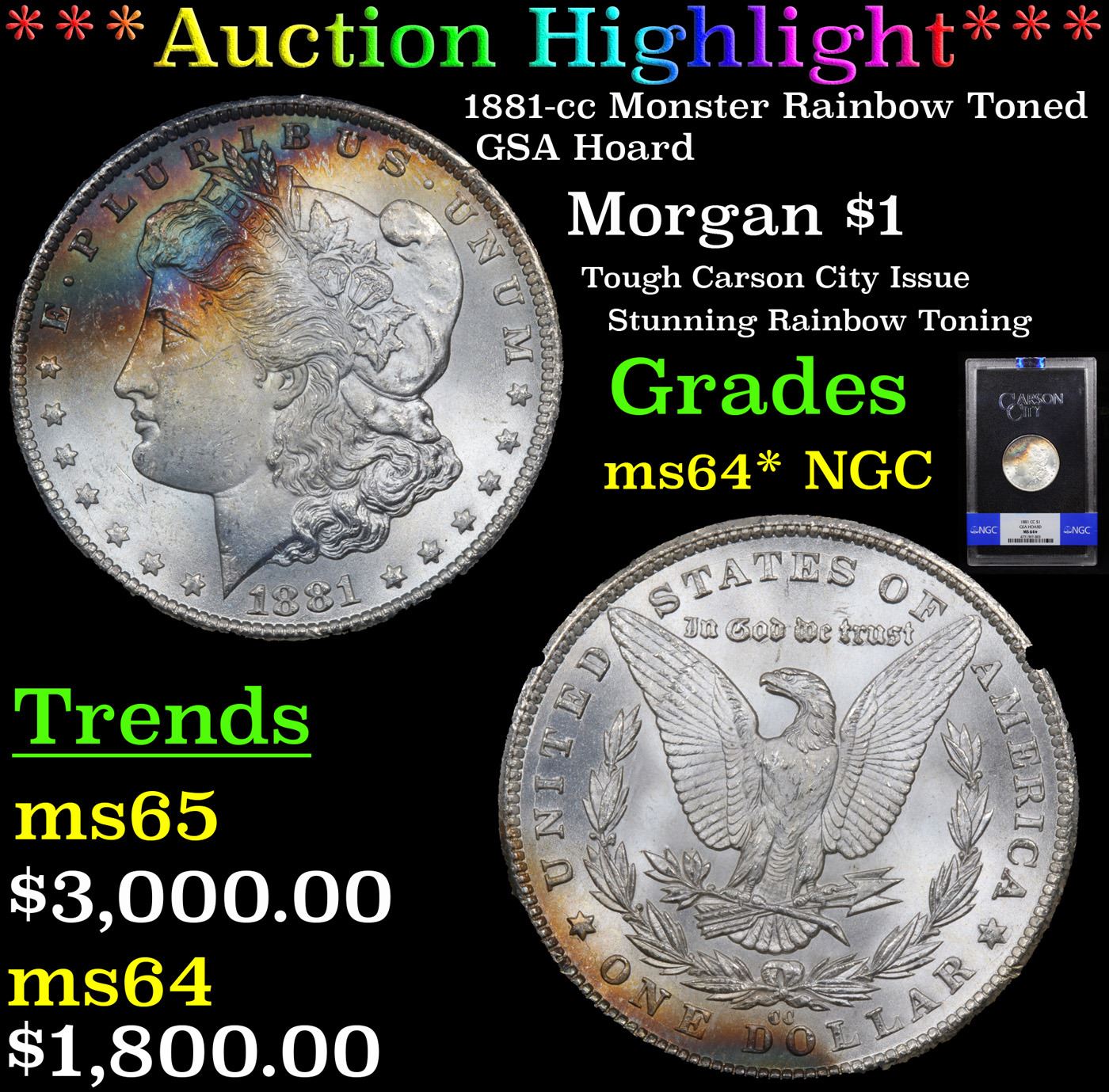***Auction Highlight*** NGC 1881-cc GSA Hoard Morgan Dollar $1 Graded ms64* By NGC (fc)