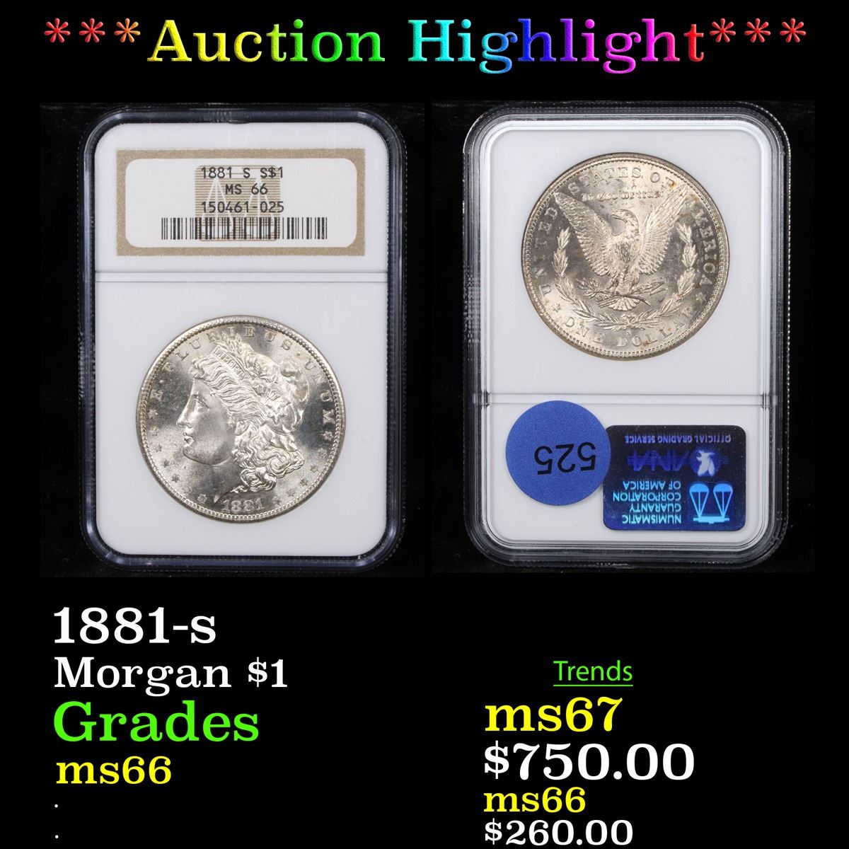 ***Auction Highlight*** NGC 1881-s Morgan Dollar $1 Graded ms66 By NGC.