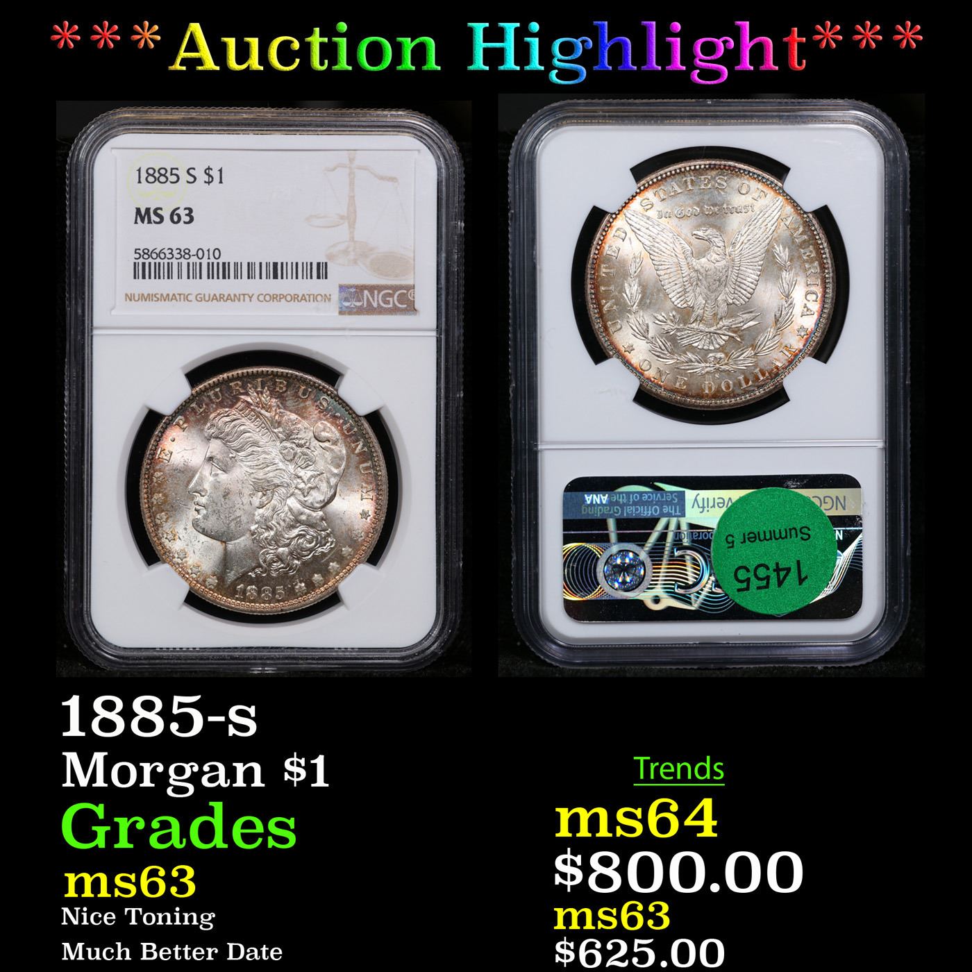 ***Auction Highlight*** NGC 1885-s Morgan Dollar $1 Graded ms63 By NGC.