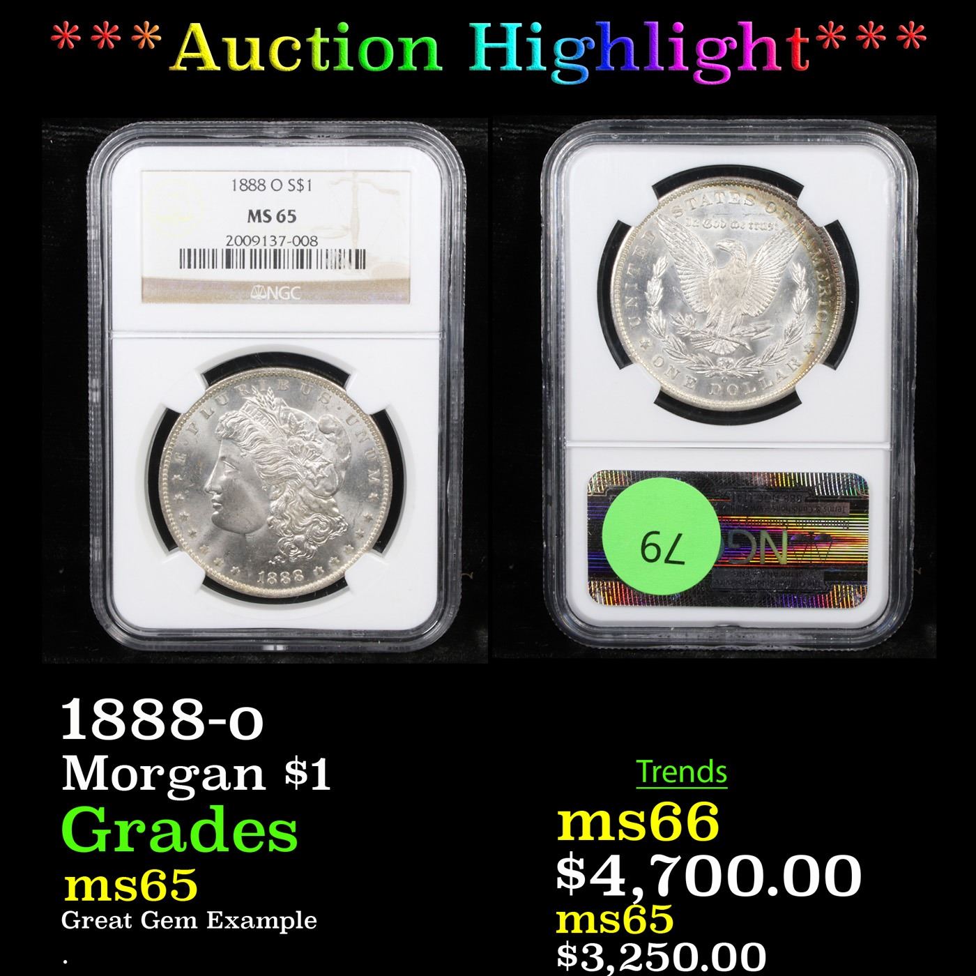 ***Auction Highlight*** NGC 1888-o Morgan Dollar $1 Graded ms65 By NGC. A Corey's Pick, Bid to Win, Don't let it get Away, you might not find its equal Coin