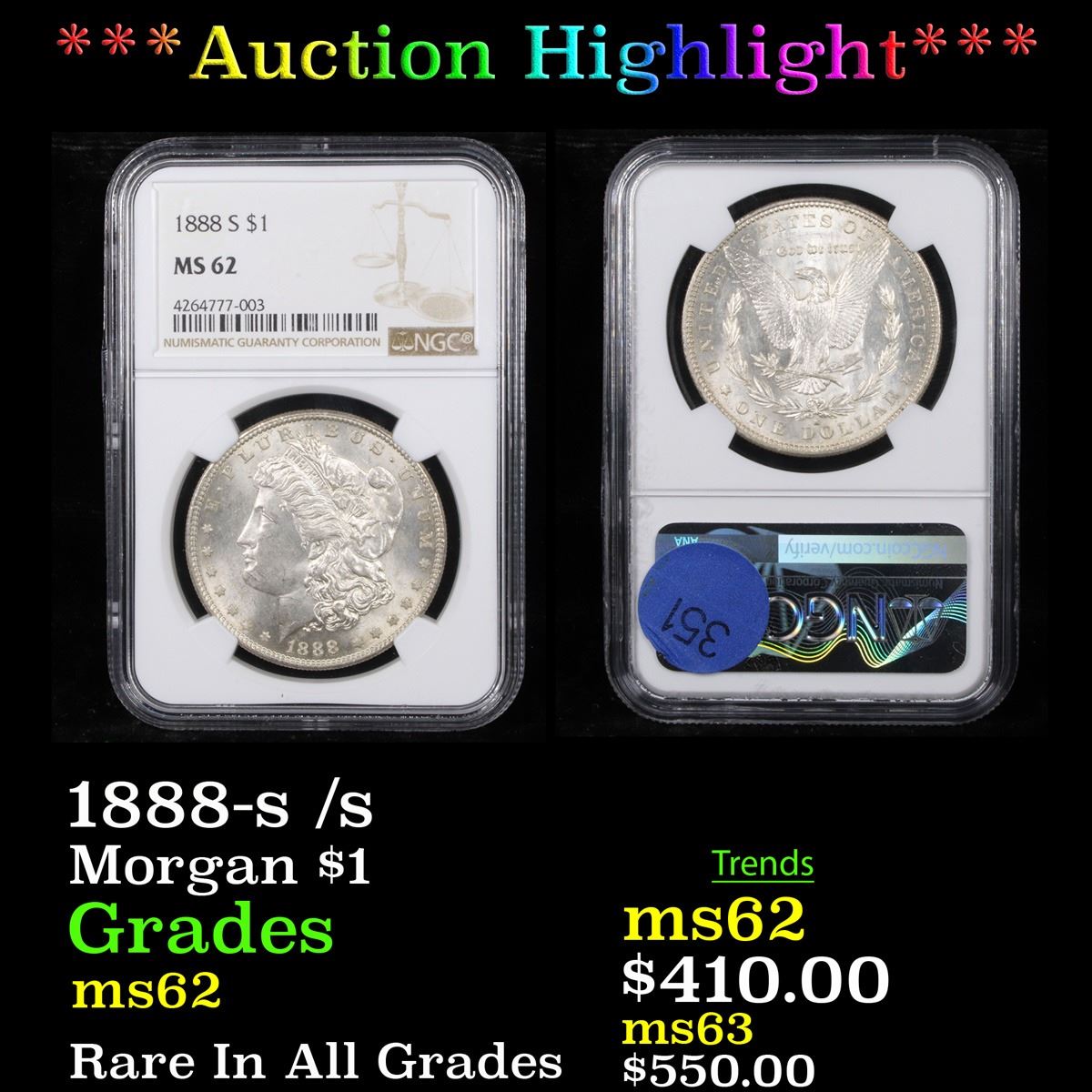 ***Auction Highlight*** NGC 1888-s /s Morgan Dollar $1 Graded ms62 By NGC.