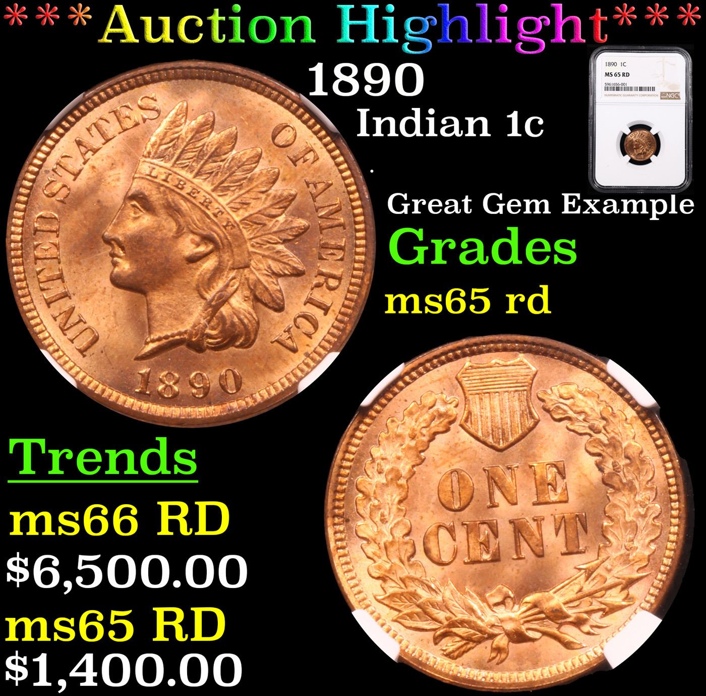 ***Auction Highlight*** NGC 1890 Indian Cent 1c Graded ms65 rd By NGC.