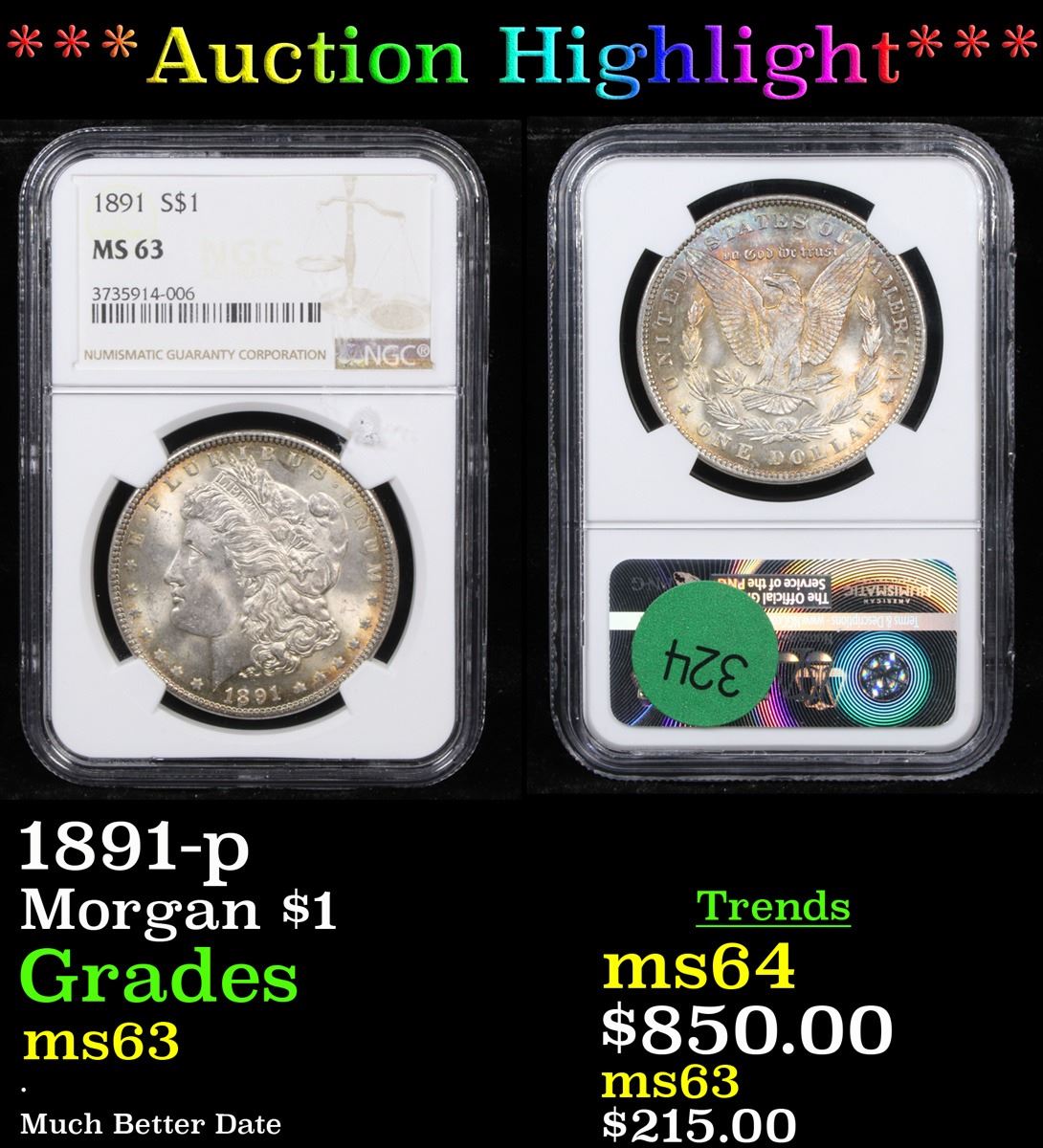 ***Auction Highlight*** NGC 1891-p Morgan Dollar $1 Graded ms63 By NGC.