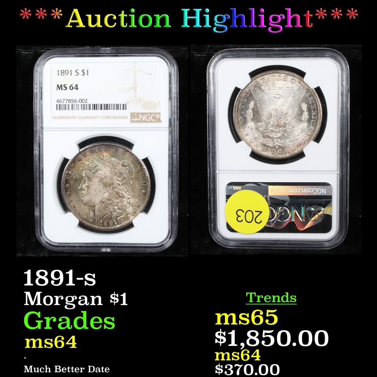 ***Auction Highlight*** NGC 1891-s Morgan Dollar $1 Graded ms64 By NGC.