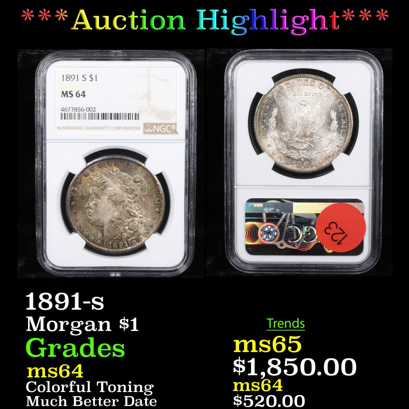 ***Auction Highlight*** NGC 1891-s Morgan Dollar $1 Graded ms64 By NGC.