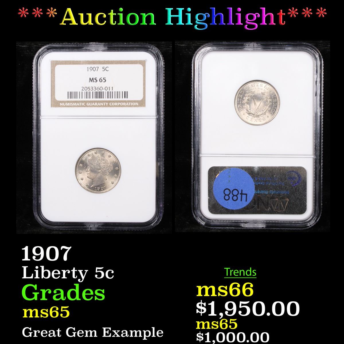 ***Auction Highlight*** NGC 1907 Liberty Nickel 5c Graded ms65 By NGC.
