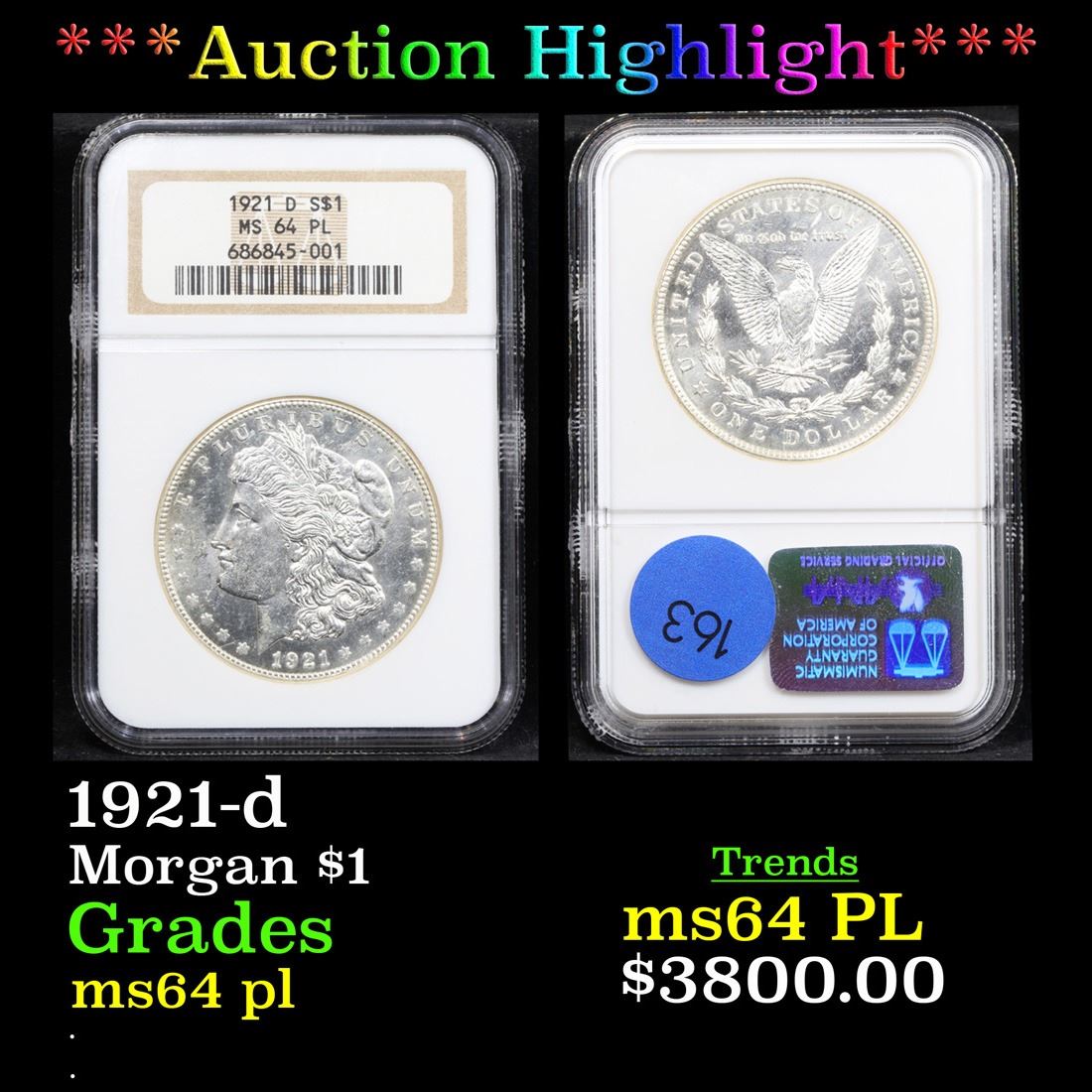 ***Auction Highlight*** NGC 1921-d . . Morgan Dollar $1 Graded ms64 pl By NGC. A Corey's Pick, Bid to Win, Don't let it get Away, you might not find its equal Coin. I give this coin my highest recommendation