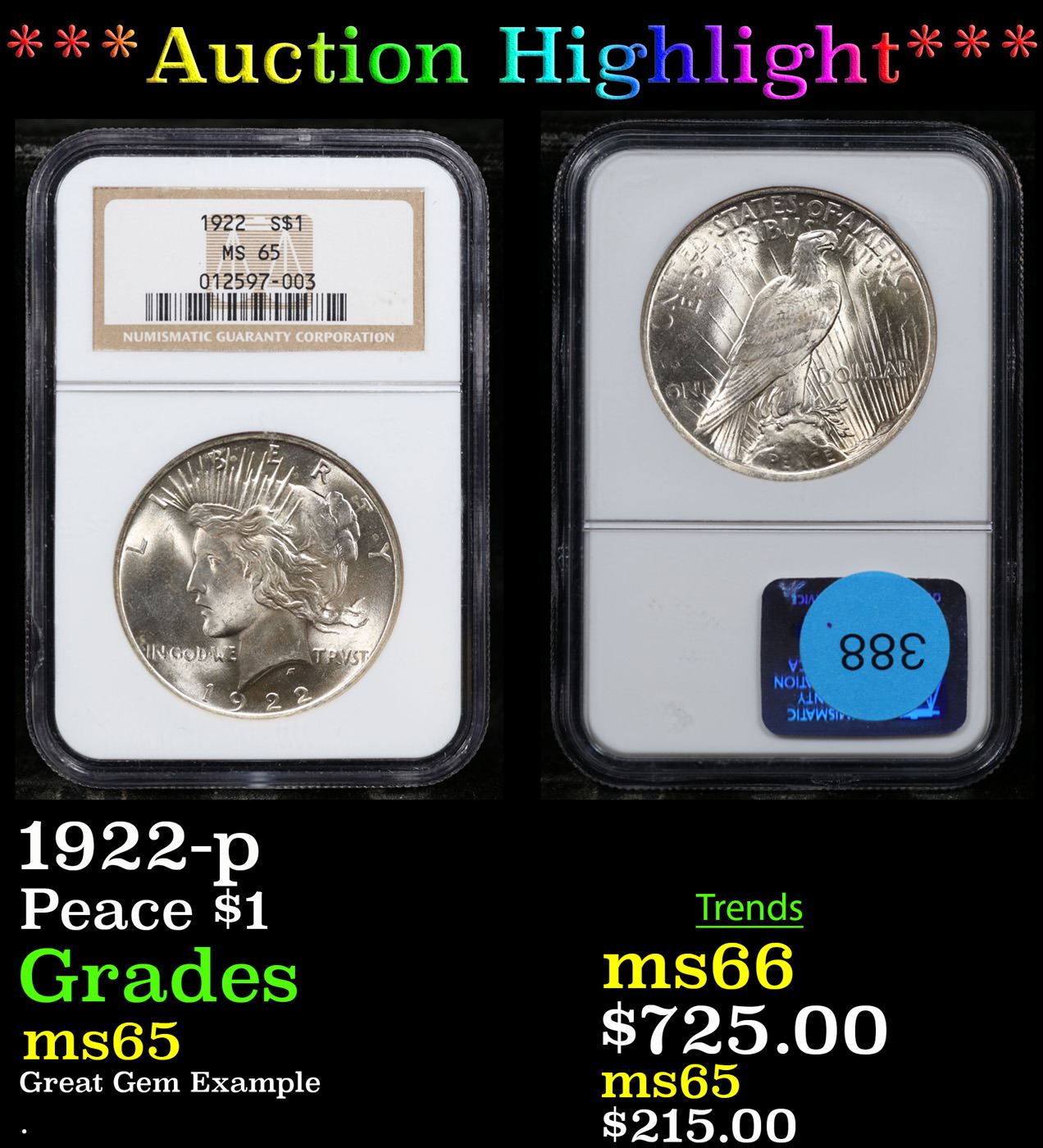 ***Auction Highlight*** NGC 1922-p Peace Dollar $1 Graded ms65 By NGC.
