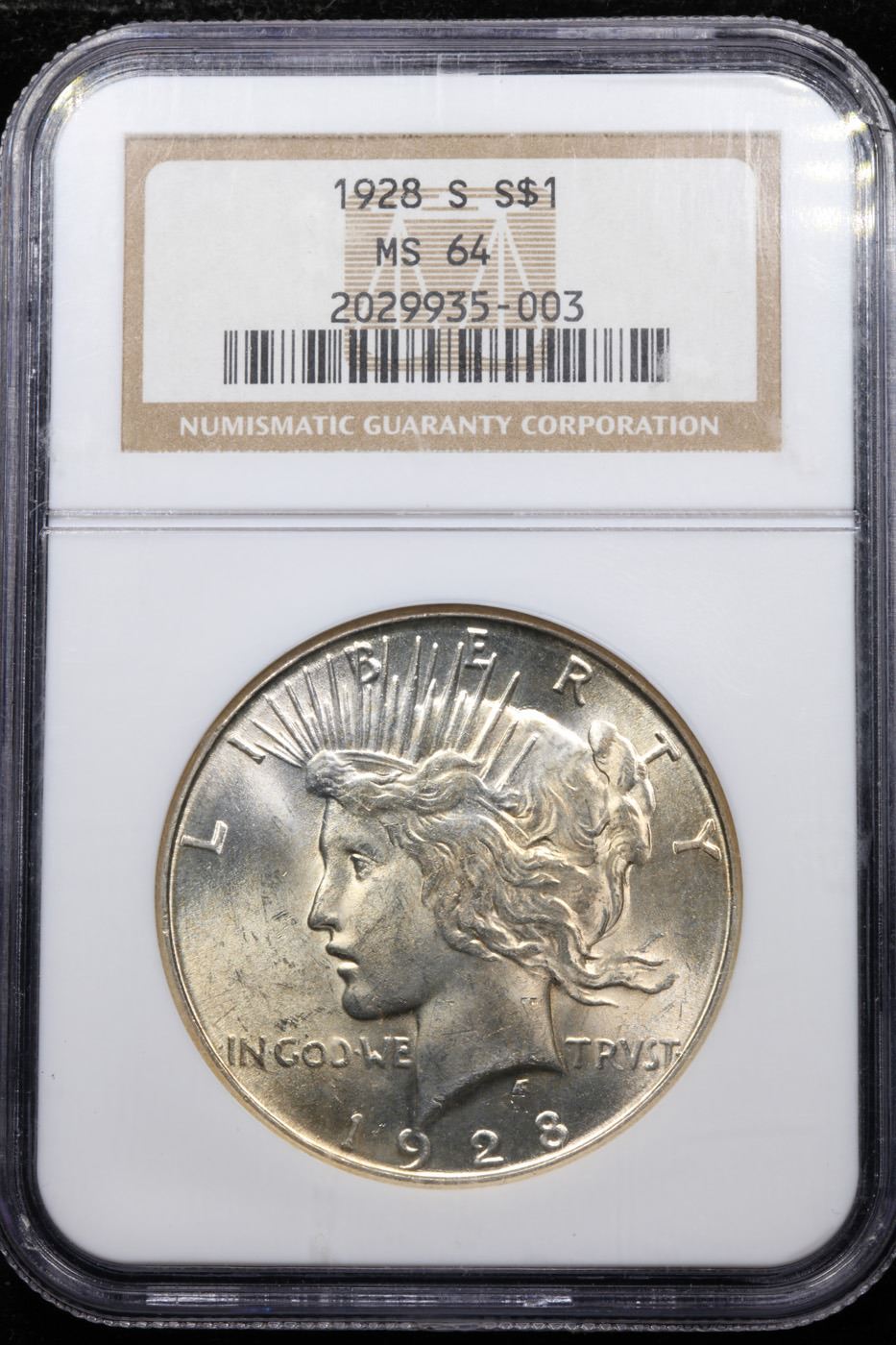 ***Auction Highlight*** NGC 1928-s Peace Dollar $1 Graded ms64 By NGC.