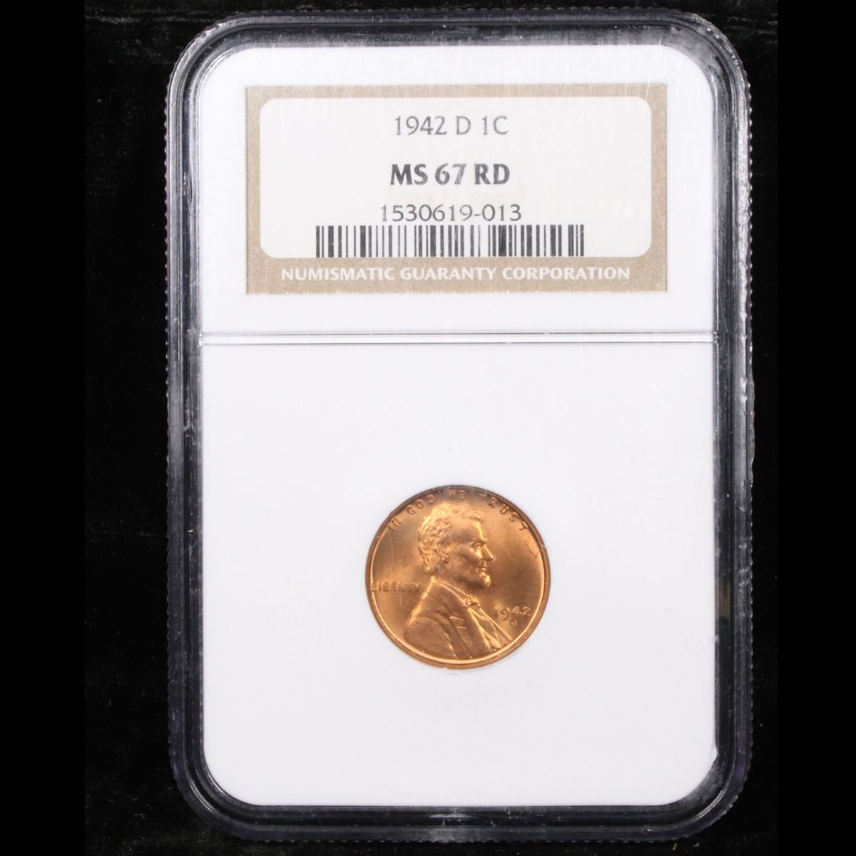***Auction Highlight*** NGC 1942-d Lincoln Cent 1c Graded ms67 rd By NGC. The 1942-d is incredibly Rare in ms68 RD. Only 4 Known Examples. Even an Upgrade to ms67+ would send this value up tremendously. Very possible Upgrade. Stunning Coin, Beautiful Color, Virtually Mark Free. A Corey's Pick, Bid to Win, Don't let it get Away, you might not find its equal Coin. I give this coin my highest recommendation