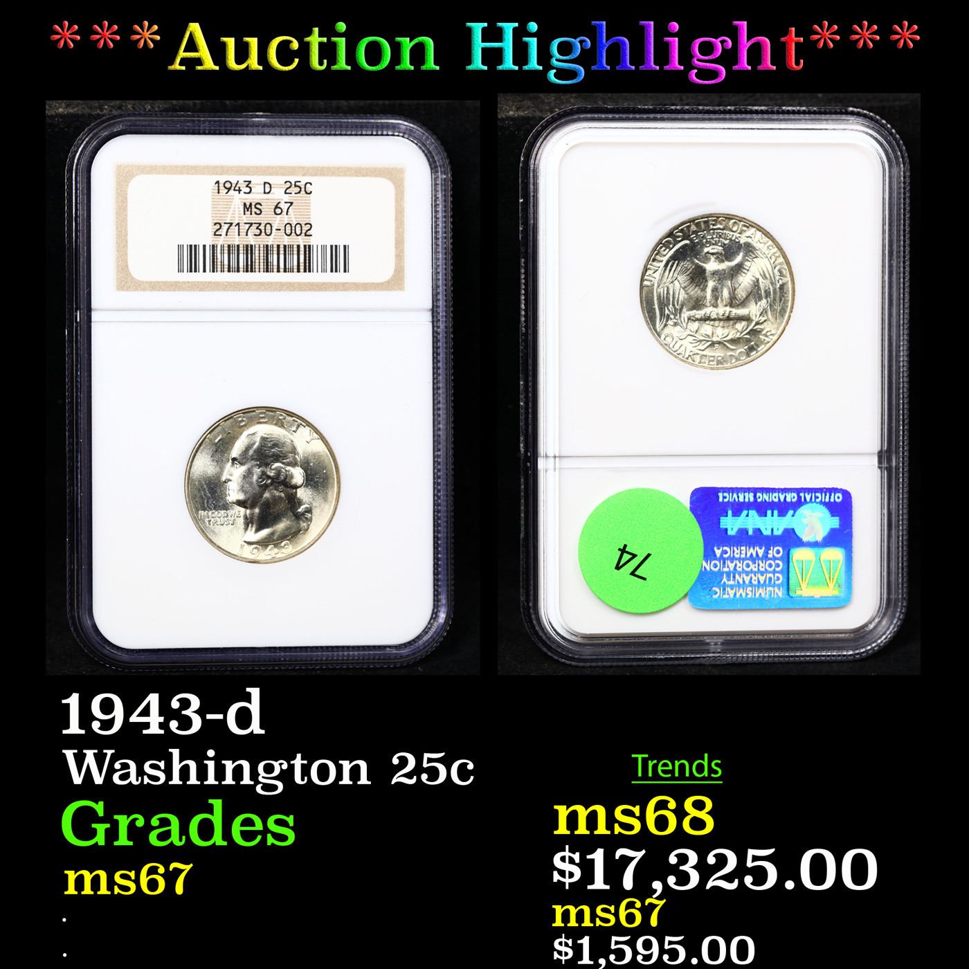 ***Auction Highlight*** NGC 1943-d Washington Quarter 25c Graded ms67 BY NGC.