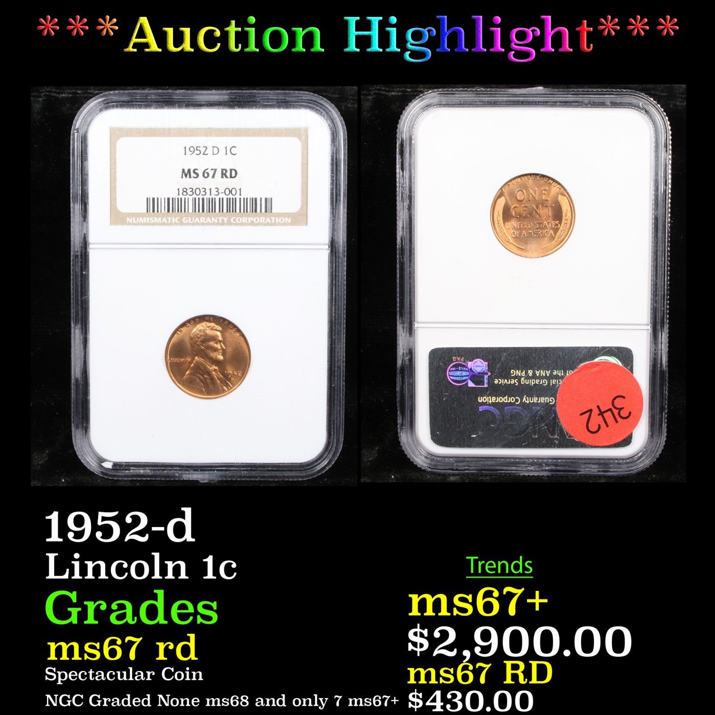 ***Auction Highlight*** NGC 1952-d Lincoln Cent 1c Graded ms67 rd By NGC. PCGS haven't Graded any finer then 67;