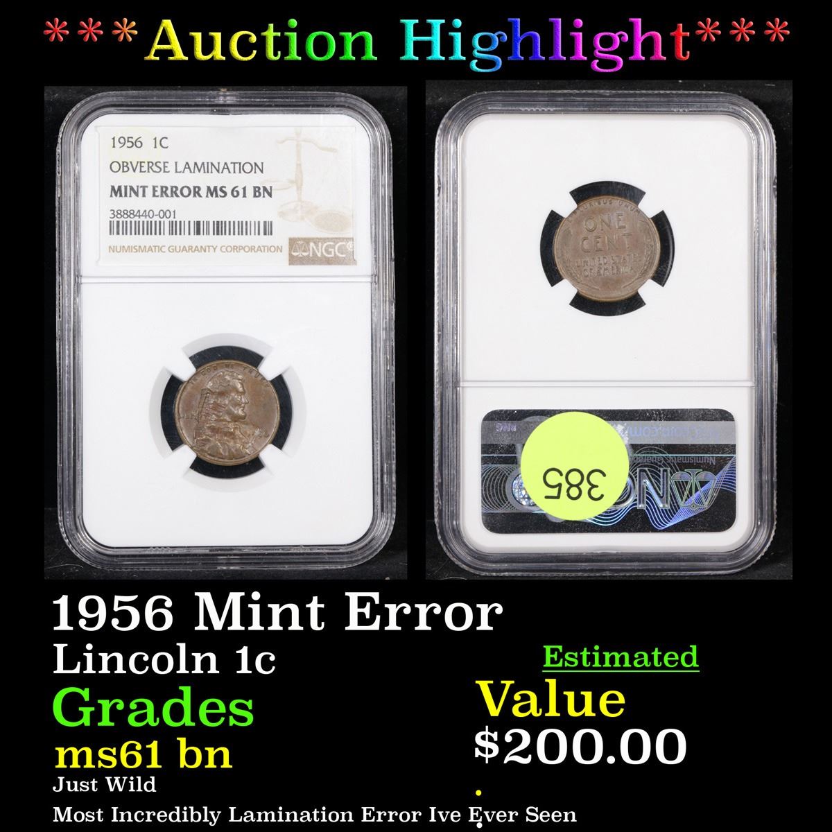 ***Auction Highlight*** NGC 1956 Mint Error Most Incredibly Lamination Error Ive Ever Seen Just Wild Lincoln Cent 1c Graded ms61 bn By NGC. A Corey's Pick, Bid to Win, Don't let it get Away Coin