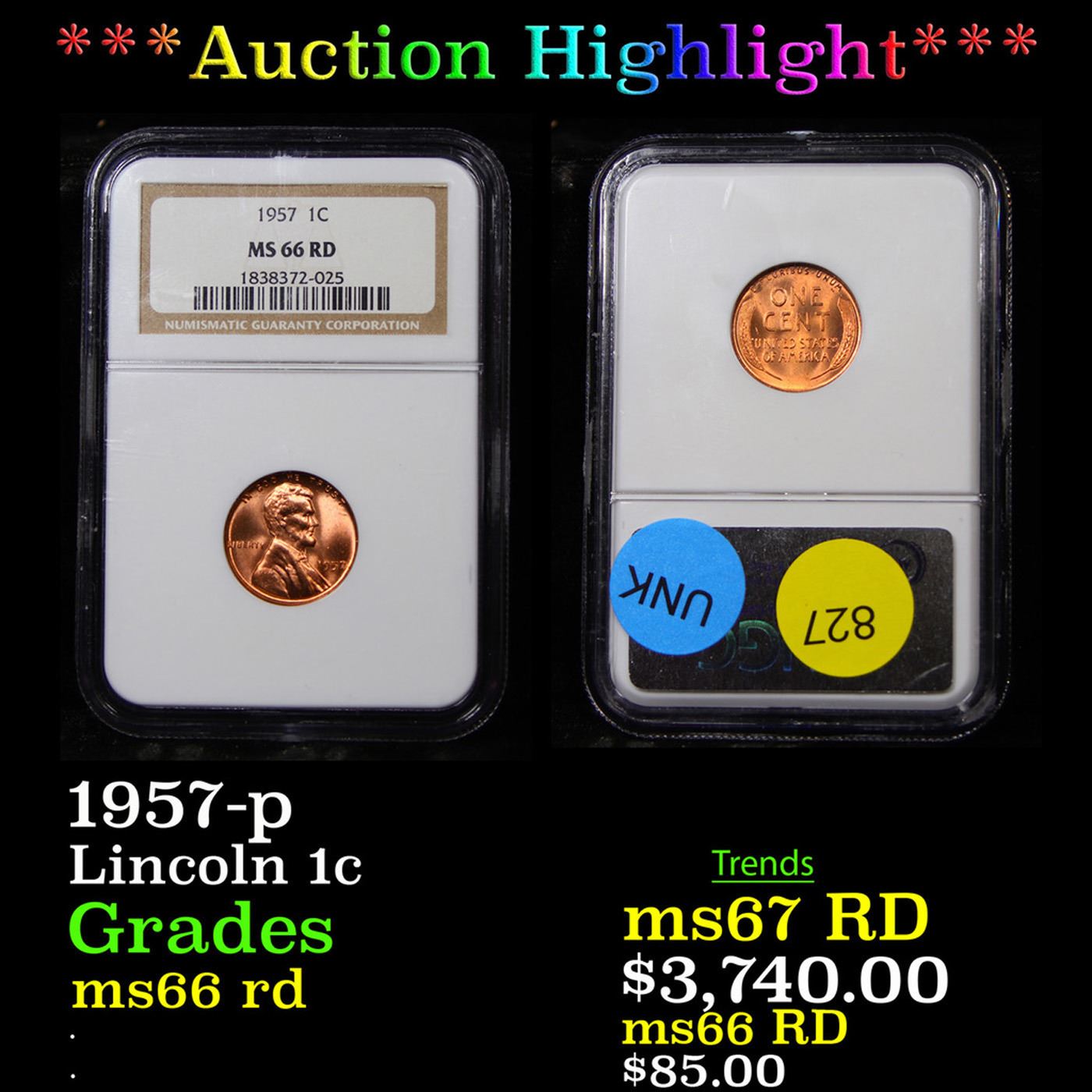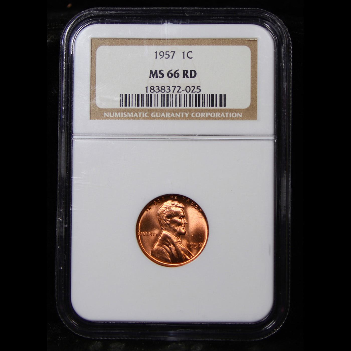 ***Auction Highlight*** NGC 1957-p Lincoln Cent 1c Graded ms66 rd By NGC.