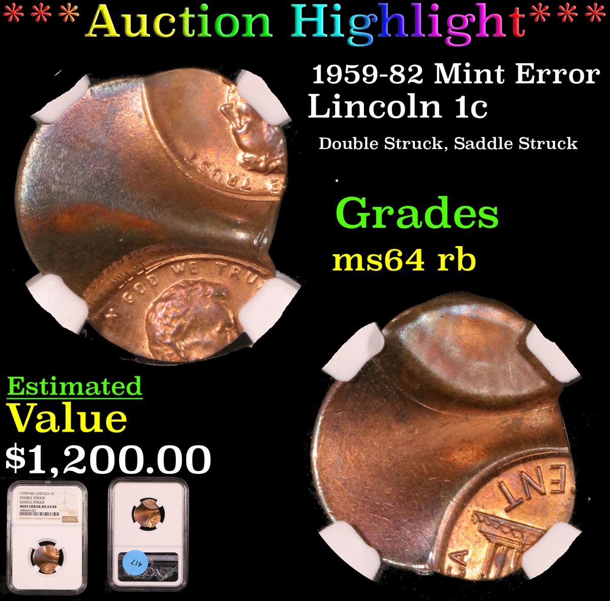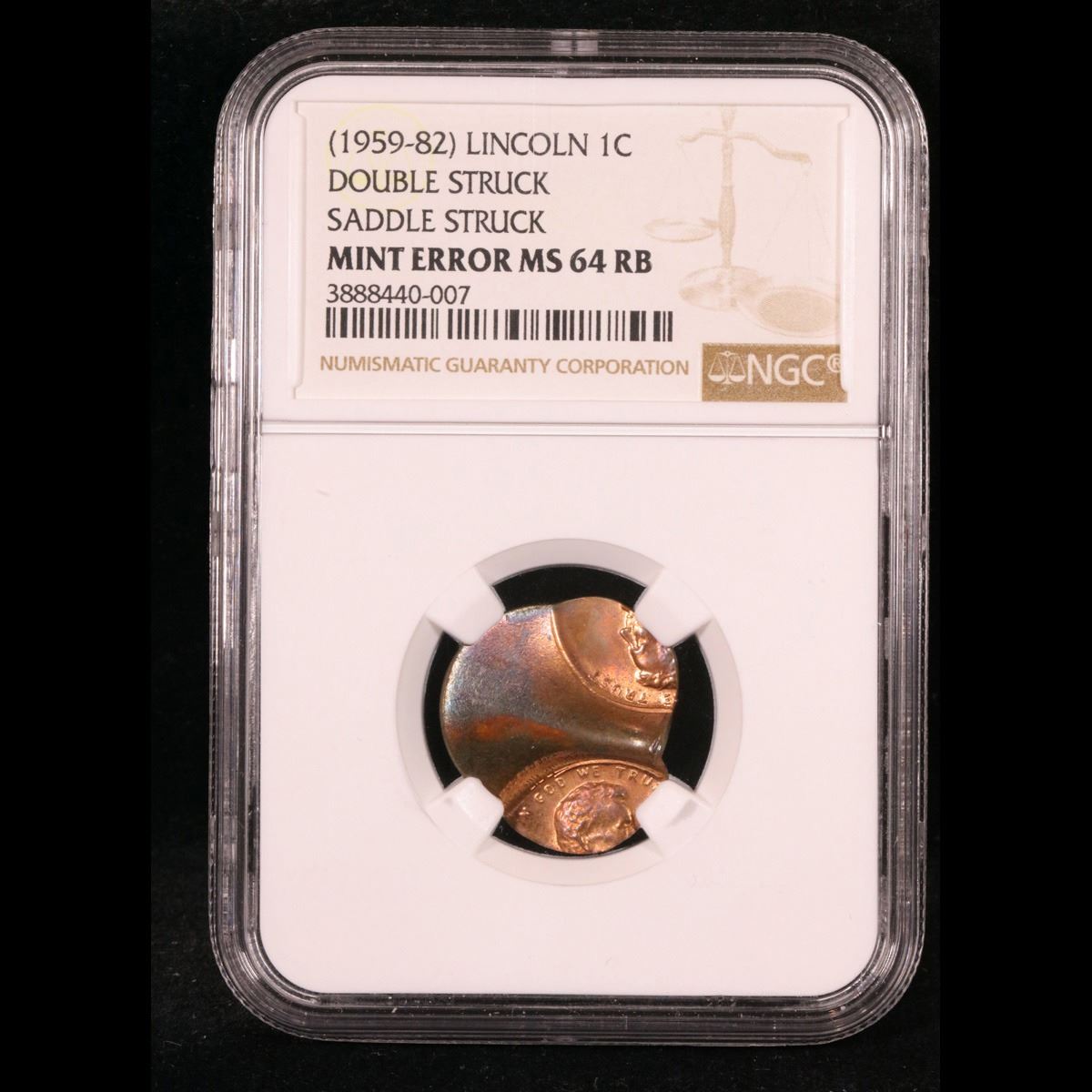 ***Auction Highlight*** NGC 1959-82 Mint Error Double Struck, Saddle Struck . Lincoln Cent 1c Graded ms64 rb By NGC. A Corey's Pick, Bid to Win, Don't let it get Away Coin