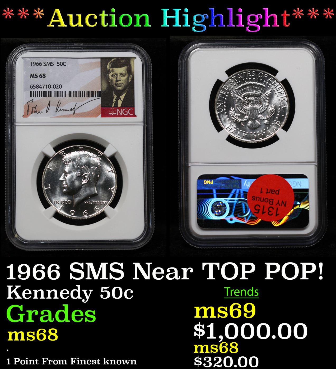 ***Auction Highlight*** NGC 1966 SMS Kennedy Half Dollar Near TOP POP! 50c Graded ms68 By NGC (fc)