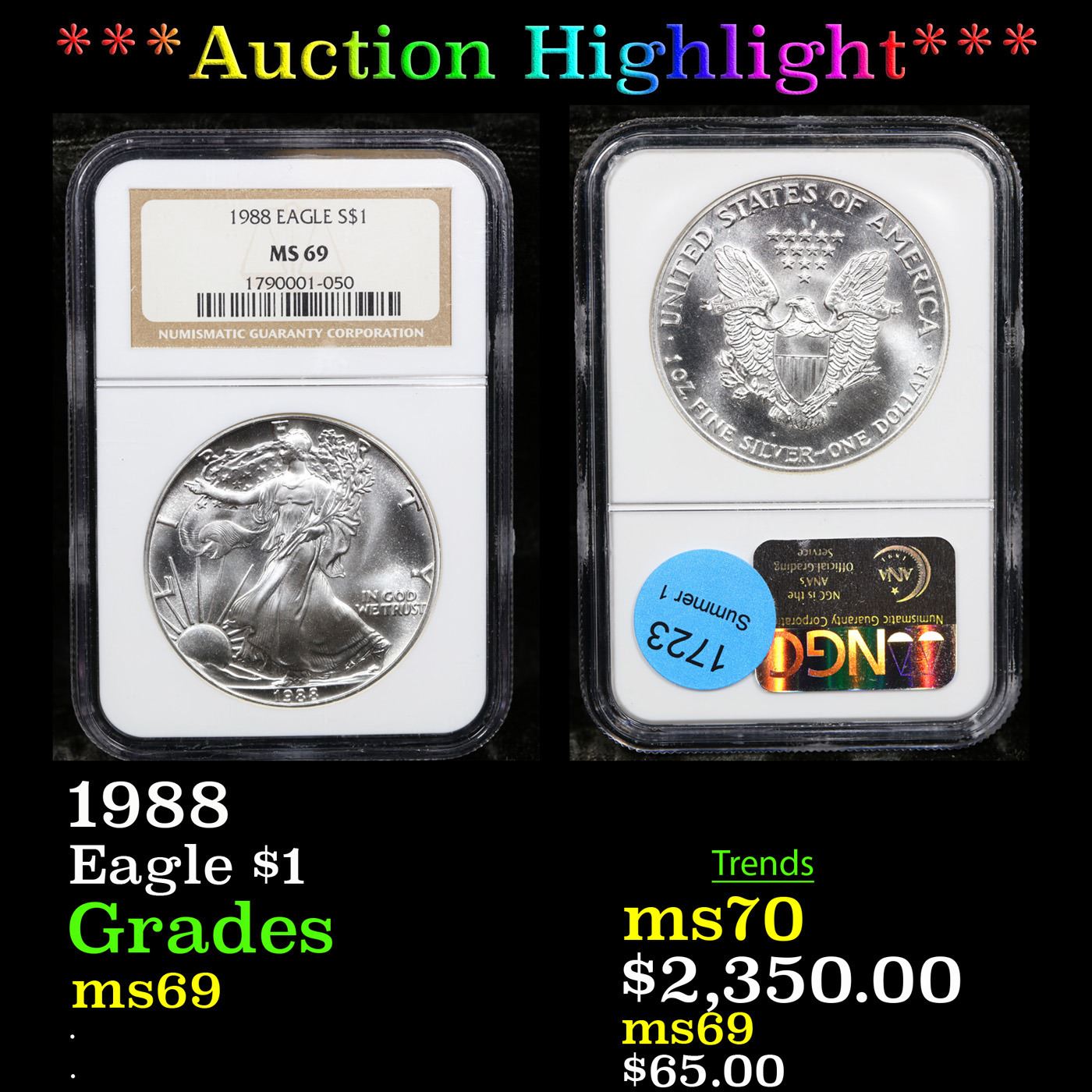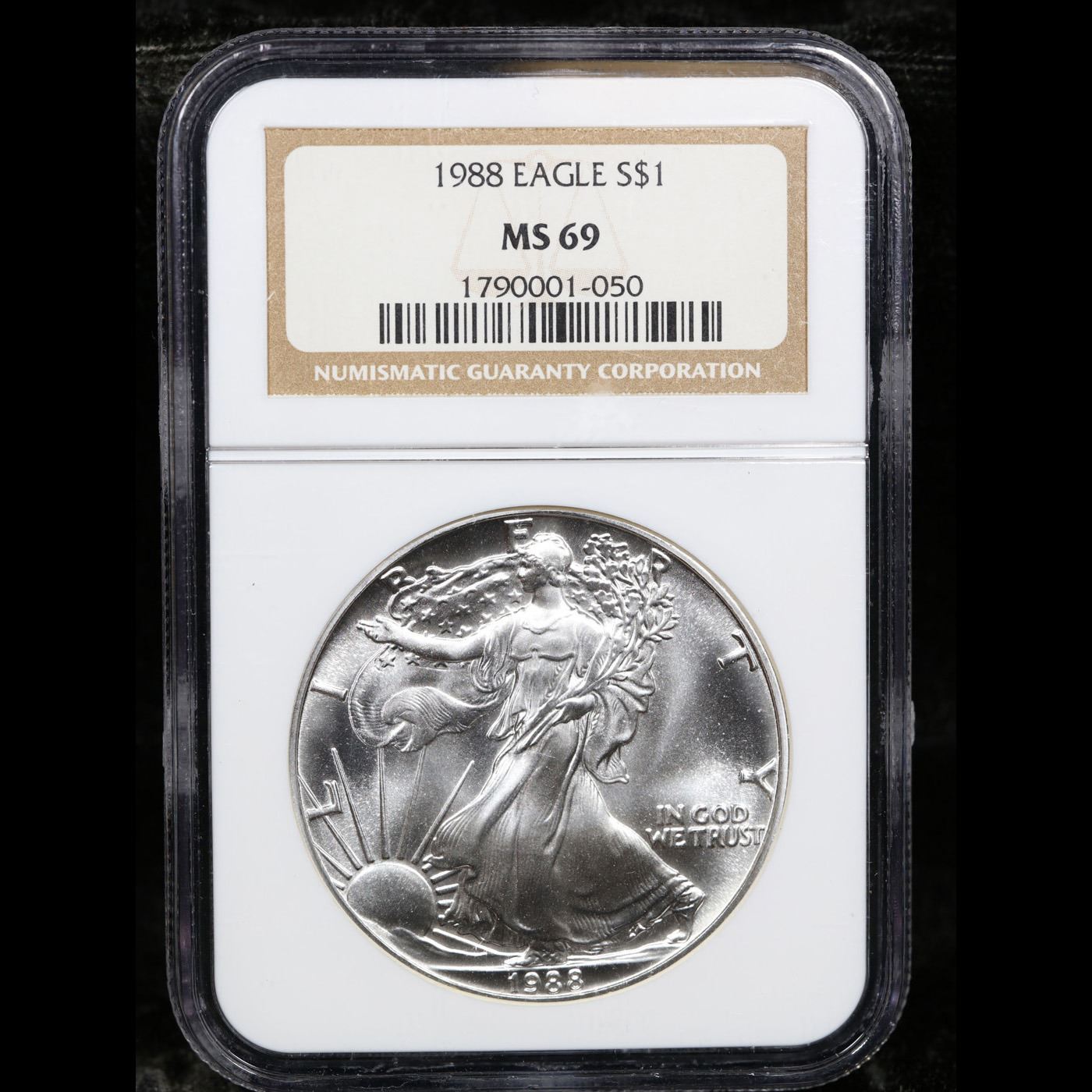 ***Auction Highlight*** NGC 1988 Silver Eagle Dollar $1 Graded ms69 By NGC.