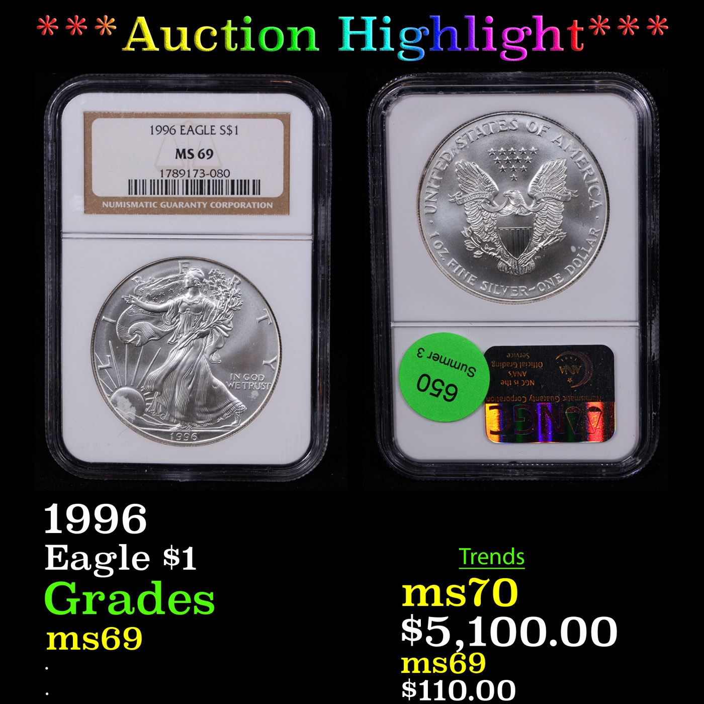 ***Auction Highlight*** NGC 1996 Silver Eagle Dollar $1 Graded ms69 By NGC.