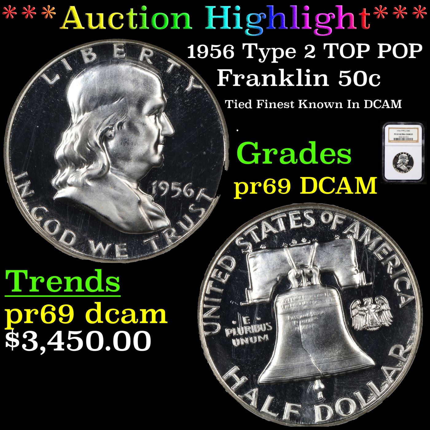 ***Auction Highlight*** NGC TOP POP! 1956 Type 2 Franklin Half Dollar 50c Graded pr69 DCAM By NGC.
