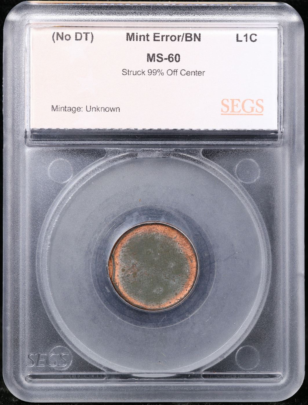 ***Auction Highlight*** NO Date Lincoln Cent Major Mint Error 1c Graded ms60 bn By SEGS