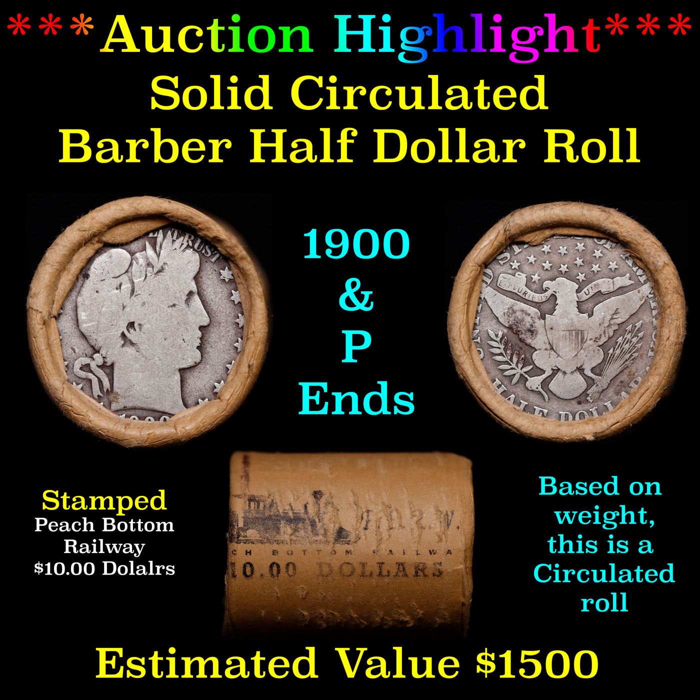 ***Auction Highlight*** Old 50c Roll $10 Halves Solid Barber Half dollar Roll with 1900 & P Ends (f