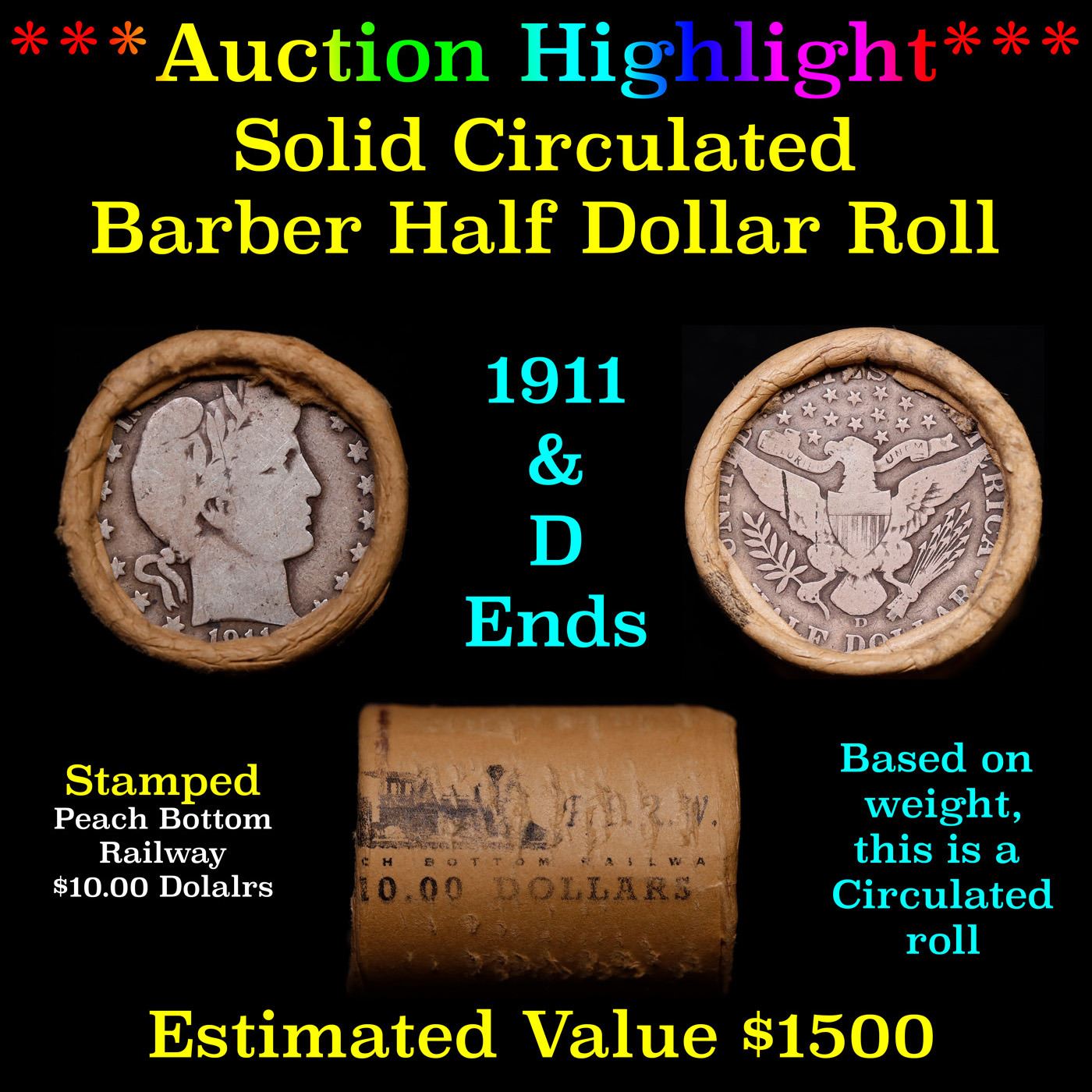 ***Auction Highlight*** Old 50c Roll $10 Halves Solid Barber Half dollar Roll with 1911 & D Ends (f