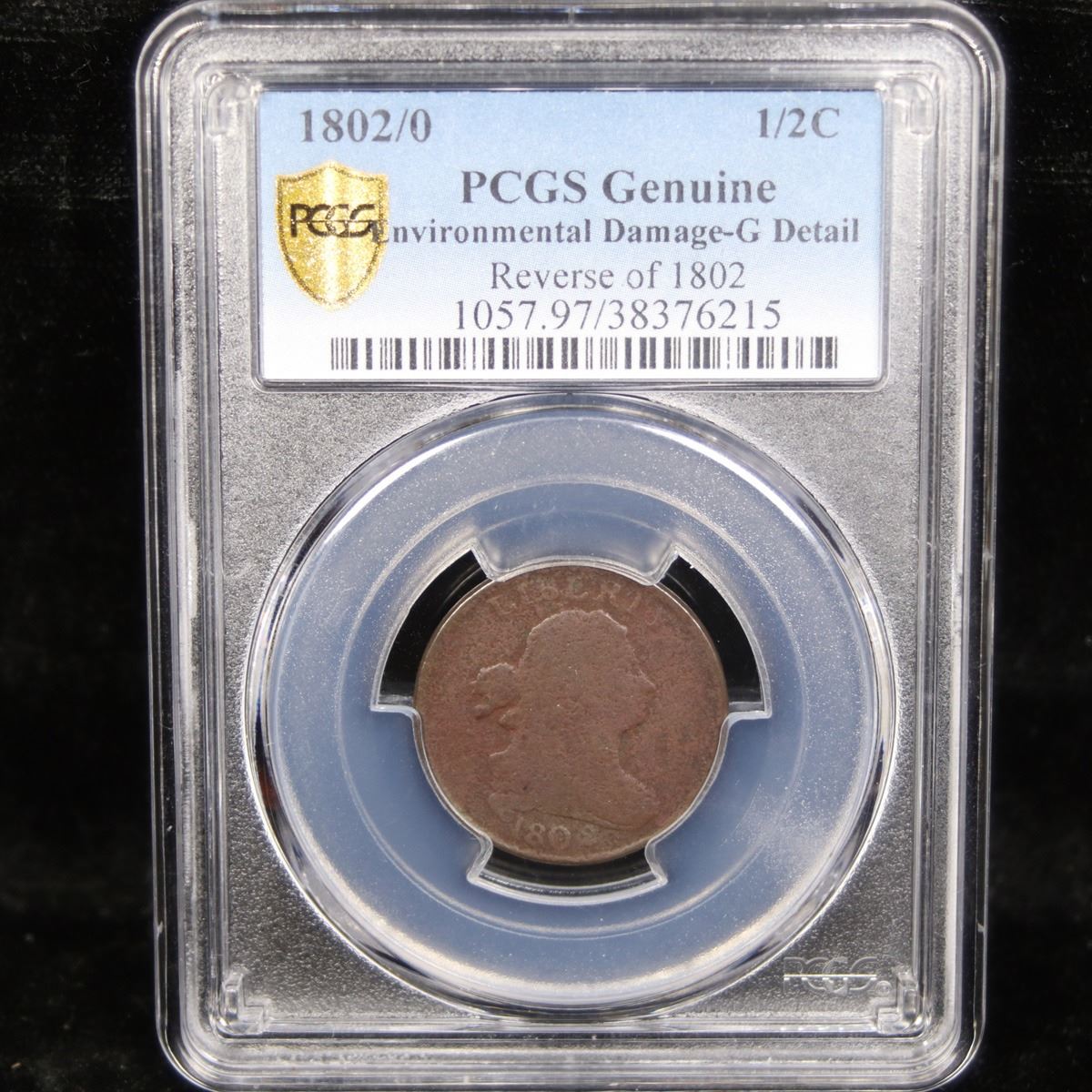***Auction Highlight*** PCGS 1802/0 Rev '02 C-2 . . Draped Bust Half Cent 1/2c Graded g details By PCGS. A Corey's Pick, Bid to Win Coin