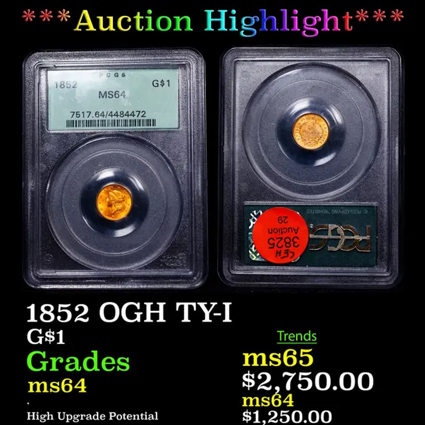 ***Auction Highlight*** PCGS 1852 OGH TY-I Gold Dollar $1 Grades ms64 By PCGS. A Key Date's Pick, Bid to Win, Don't let it get Away, you might not find its equal Coin. I give this coin my highest recommendation