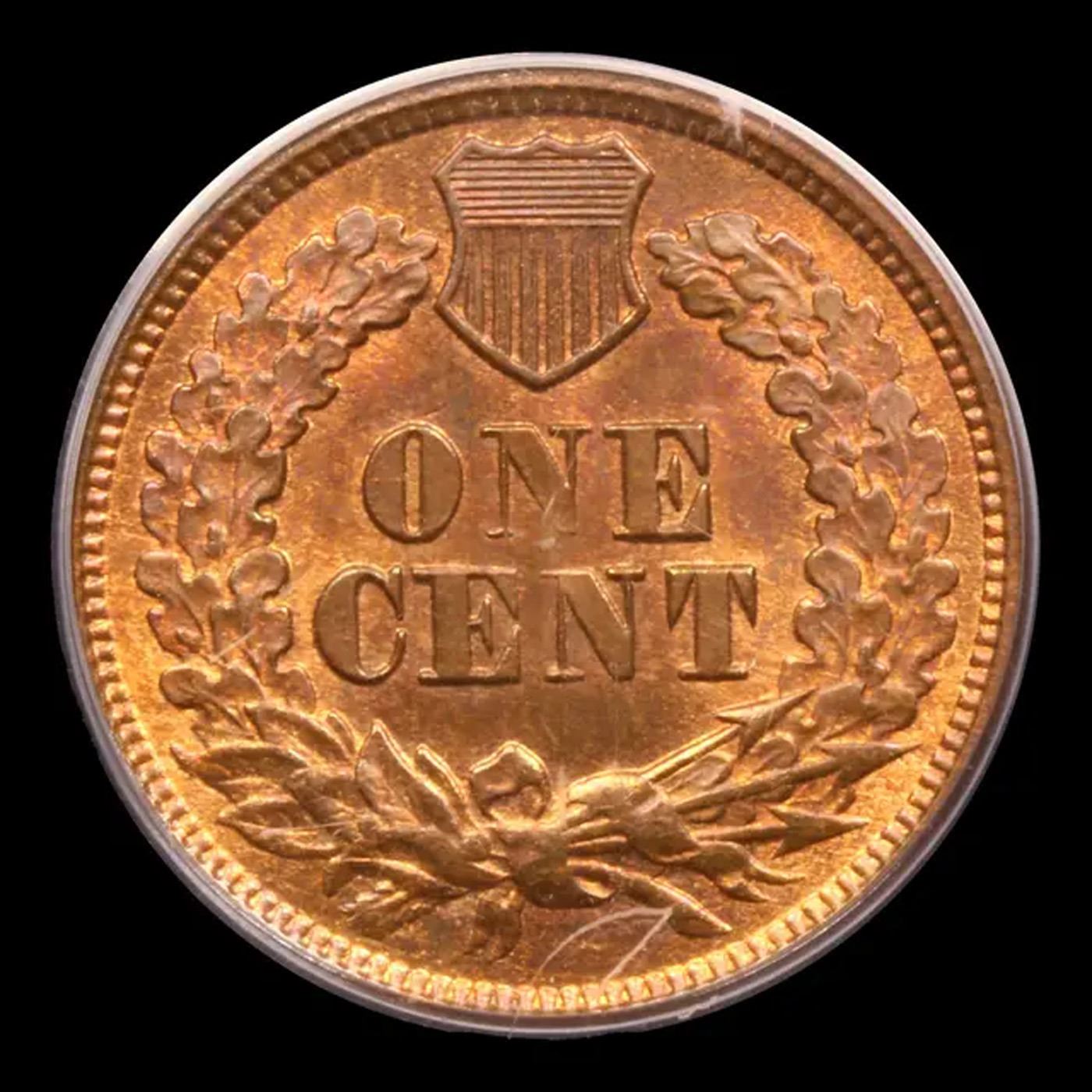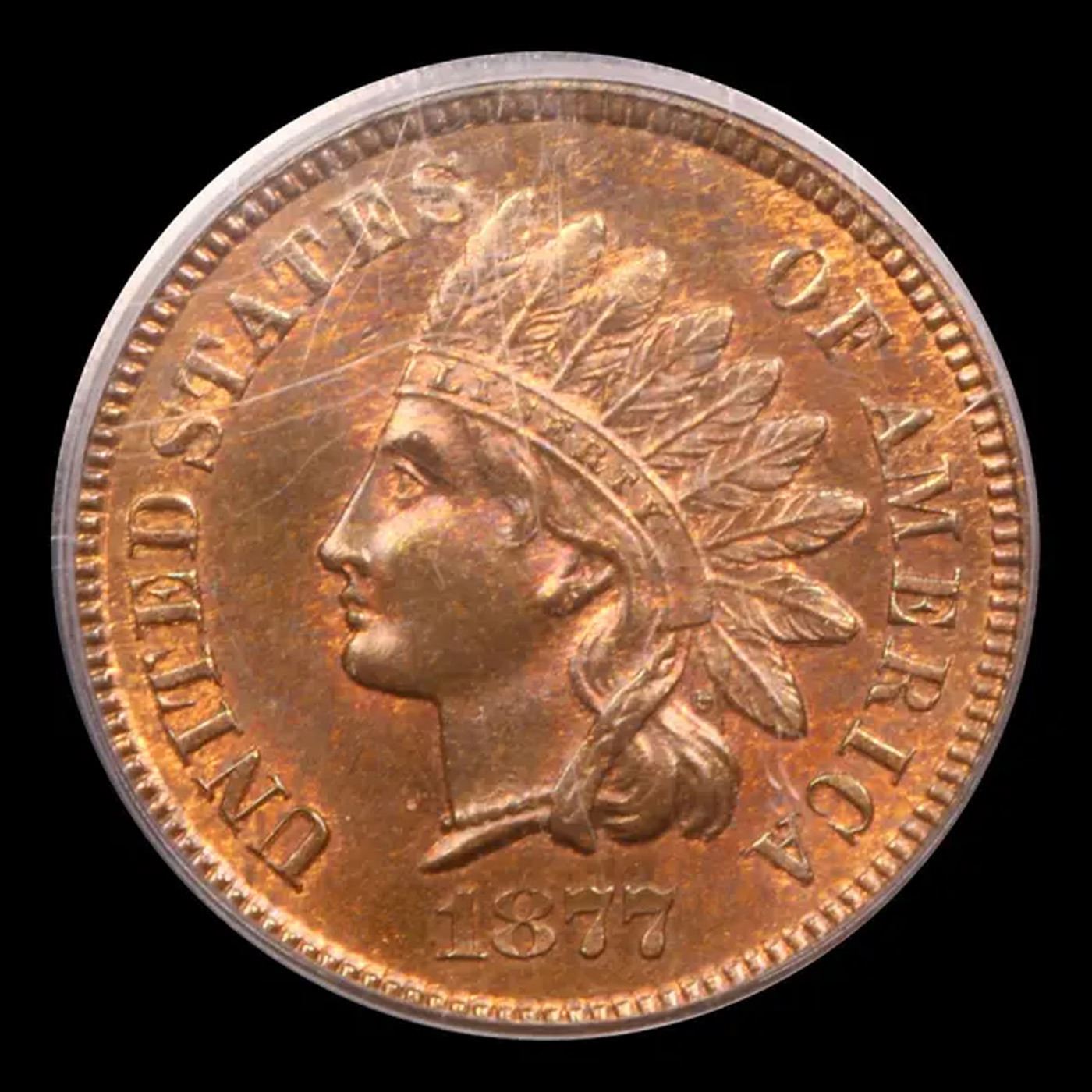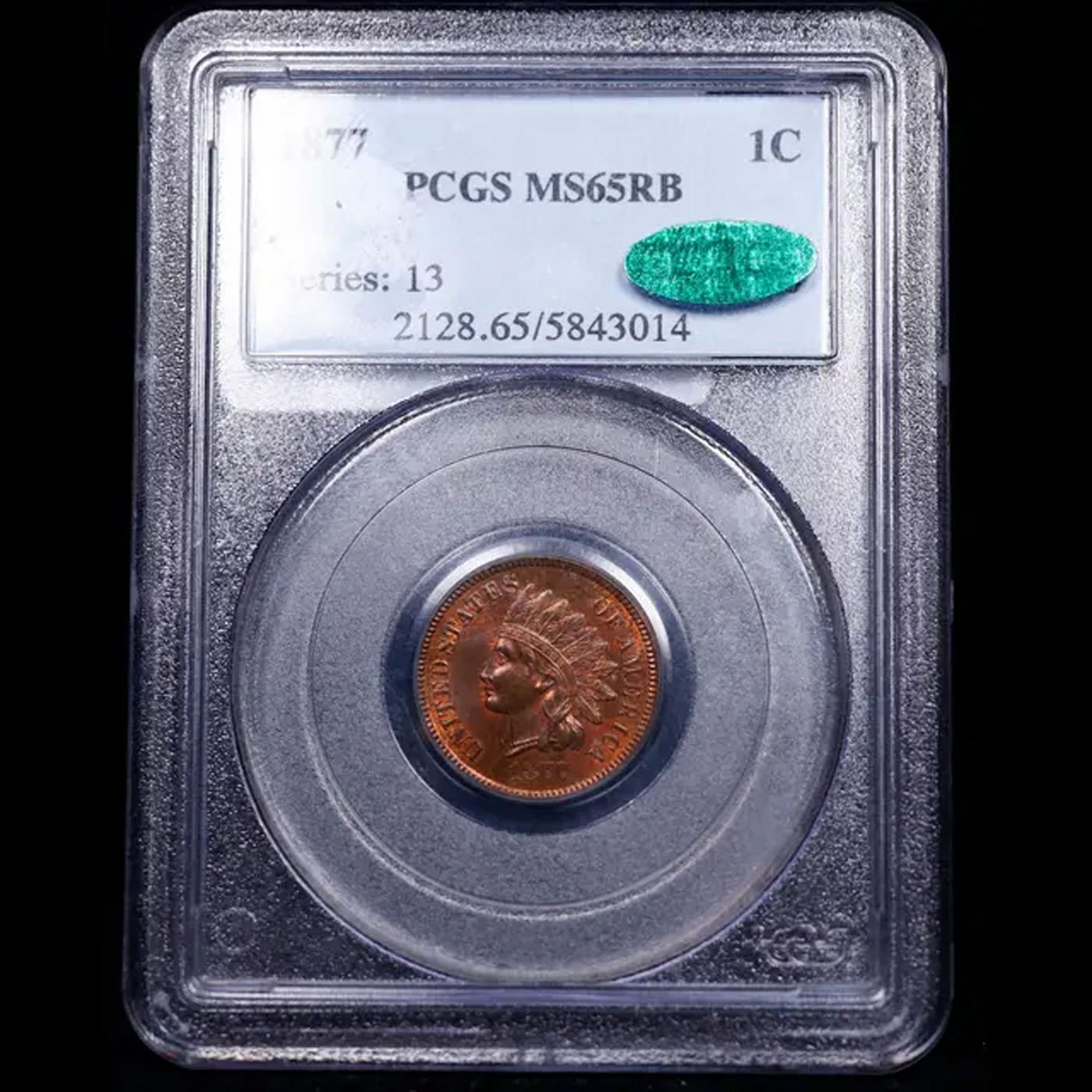 ***Auction Highlight*** PCGS 1877 Near TOP POP! Indian Cent 1c Graded ms65 rb CAC BY PCGS. The Key Date to the whole Indian Cent Series. According to Jaime Hernandez from PCGS, ‘The 1877 Indian Cent is unquestionably the most desirable coin in the entire circulation strike Indian Cent series. It is the second lowest mintage coin in the series, and only the 1909-S Indian cent has a lower mintage. Despite the 1877 Indian cent having the second lowest mintage in the series, it also survives in much smaller numbers than the 1909-S Indian cent. This is mainly due to the lack of coins being collected in 1877 compared to 1909. There is only one reverse die confirmed as striking all existing 1877 Indian cents. However, if there was only one reverse die employed to strike all (877,000)1877 Indian cents, then this lone die should have sustained major planchet flaws when striking such a large mintage. Surprisingly, this is not the case since 1877 cents show no traces of a damaged die. Therefore, it is strongly believed that the mintage of 877,000 coins struck, is actually a highly inflated figure. This is a lovely, high quality survivor of this popular and elusive 1870s cent. There is ample remaining luster, particular on the reverse, over which mottled glossy-brown patina has formed. Diagnostic softness of definition is noted over the lower right side of the N in ONE, and the feather tips on the obverse are also somewhat softly impressed, but these features do not detract from this coin's pleasing eye appeal. In sum, this is a smooth, well preserved coin with considerable flash for this otherwise poorly preserved issue.From the Patrick J. Mullen Collection. A Key Date's Pick, Bid to Win, Don't let it get Away, you might not find its equal Coin. I give this coin my highest recommendation