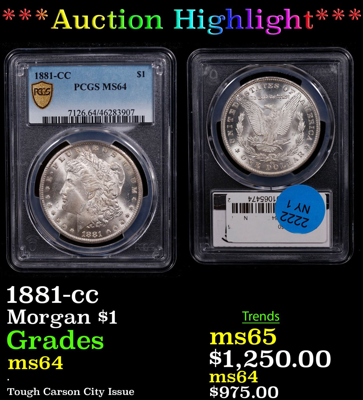 ***Auction Highlight*** PCGS 1881-cc Morgan Dollar $1 Graded ms64 By PCGS.