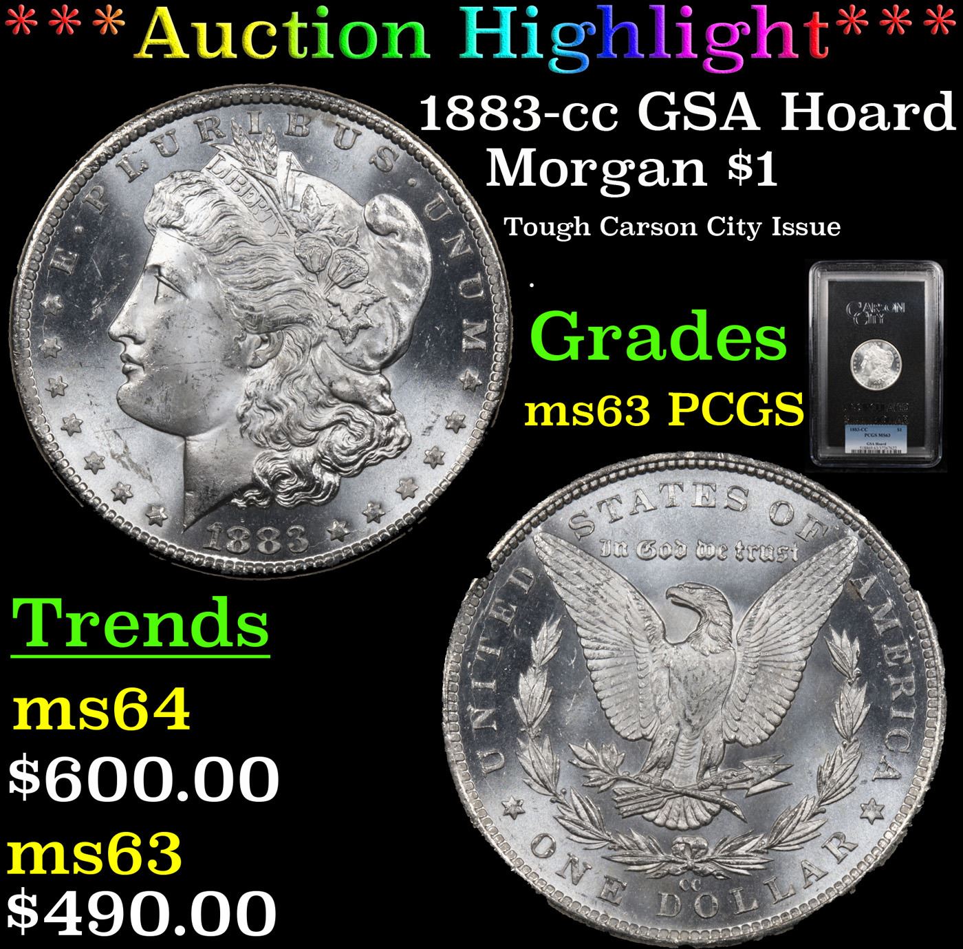 ***Auction Highlight*** PCGS 1883-cc GSA Hoard Morgan Dollar $1 Graded ms63 By PCGS.