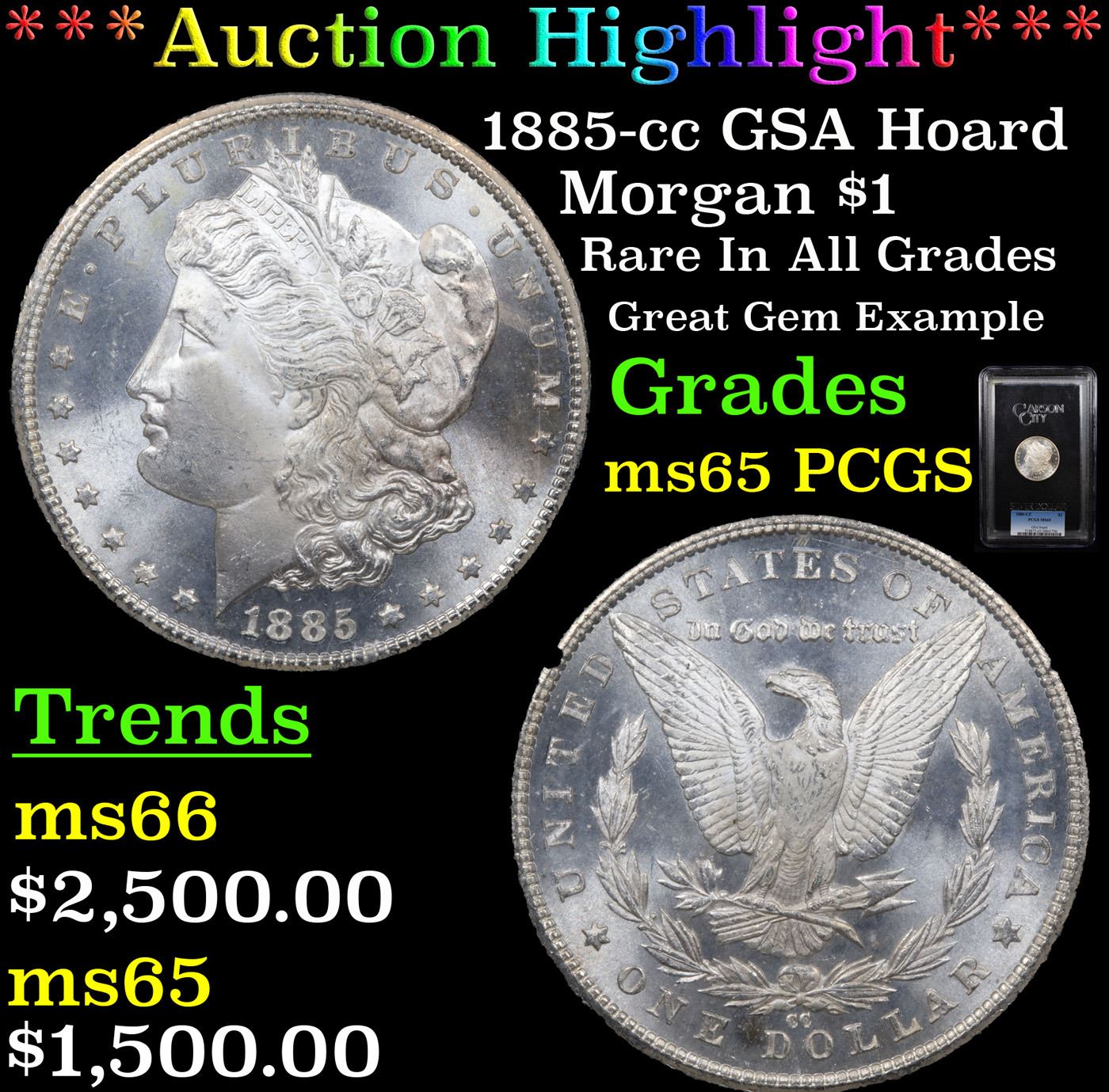 ***Auction Highlight*** PCGS 1885-cc GSA Hoard Morgan Dollar $1 Graded ms65 By PCGS.